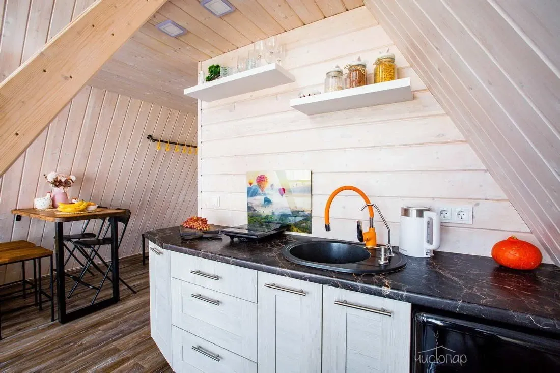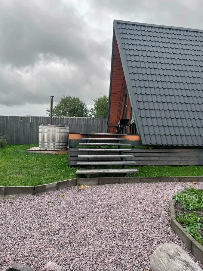 Дополнительно: Диван, Мини-кухня, Санузел, Стол, Стулья, Гель для душа, Душ, Мыло, Набор полотенец, Умывальник, Фен, Шампунь, Микроволновая печь, Плита, Посуда, Чайник, Холодильник, Питьевая вода, Качеля, Мангал, Терраса.
