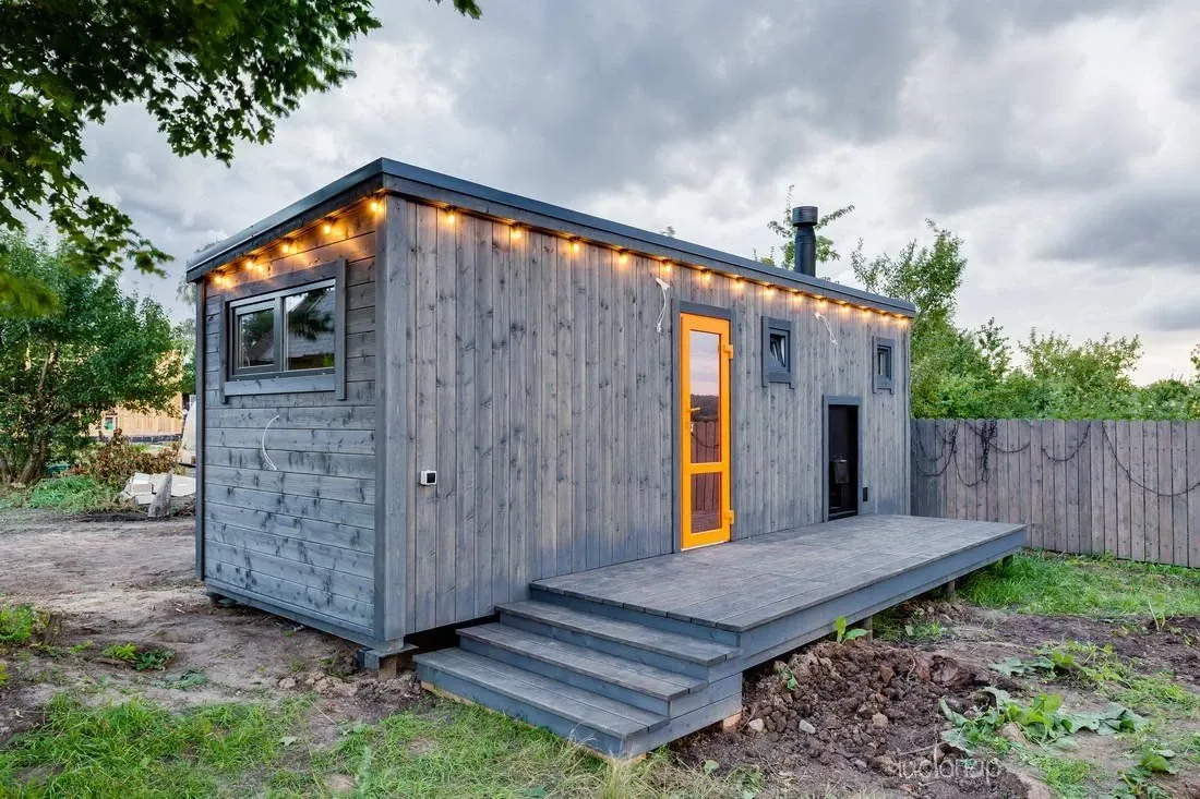 Дизайн домика сочетает в себе изысканность и комфорт.
