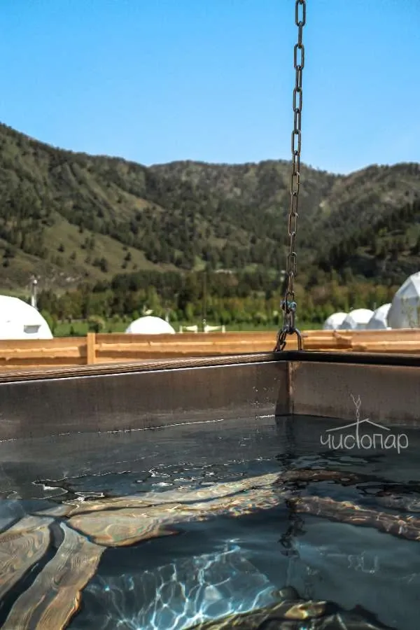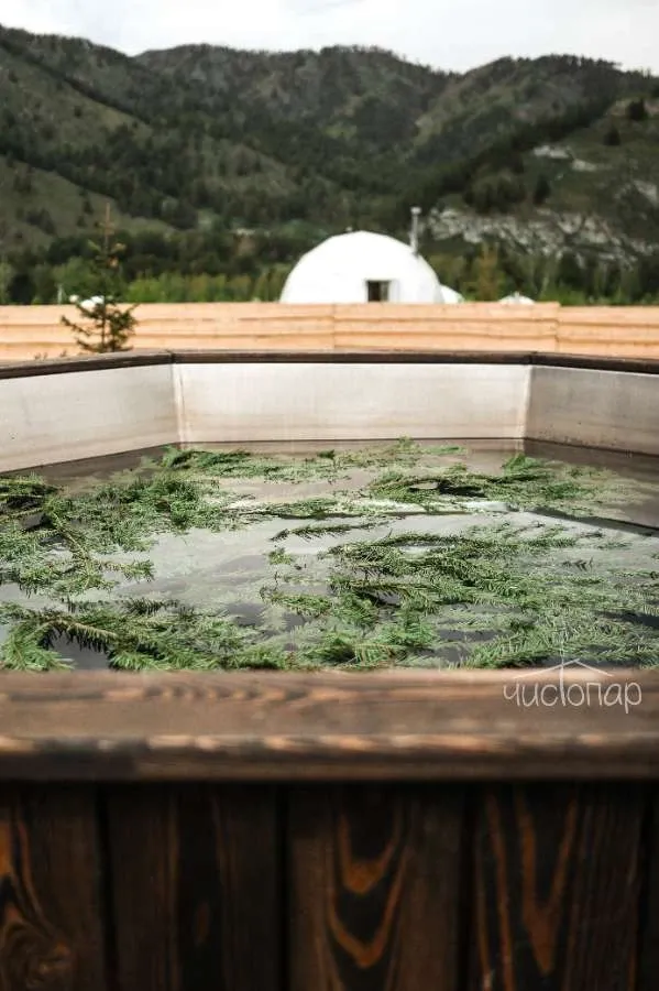 Банный чан Алтай с панорамным видом на горы, сеновал под открытым небом и уединенный дворик создают идеальные условия для релаксации и восстановления. После парения вас ждет церемония алтайского чаепития с медом горного разнотравья и кедровыми орешками.