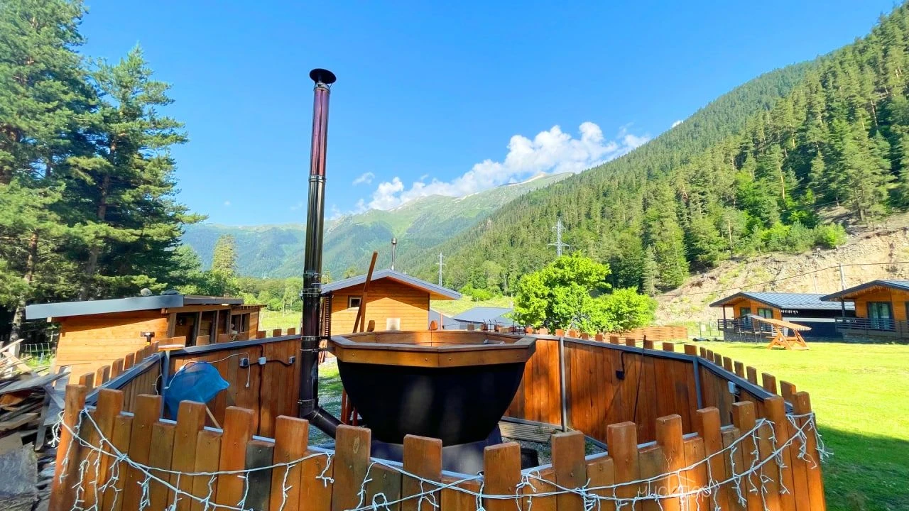 Отель располагается в тихом и удивительно живописном месте у подножия скалы Карча-Тёбе. Вы сможете не только отдохнуть в нашем отеле, но и посетить русскую баню с теплой купелью под открытым небом, насладиться пребыванием в уютных беседках, пока Ваши дети играют на детской площадке или поехать на экскурсии по красивейшим местам Архыза.