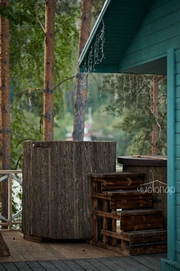Японская баня в виде деревянной бочки с подогревом изготавливается из кедра. Ценная порода древесины лучшим образом сохраняют полезные качества изделия, сверх того – дают дополнительный эффект для здоровья.
