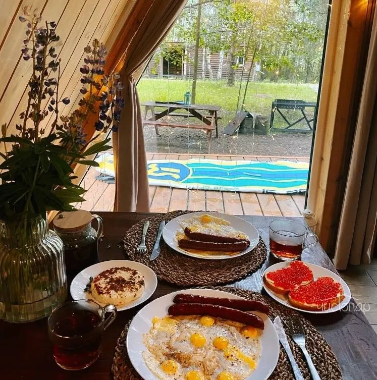 Хозяева соседней фермы держат кур, коз, собак, уток, перепелок, гусей и коров. Можно не только насладиться прекрасными закатами у реки, но и сходить на экскурсию на дойку. В сезон в лесу есть грибы и ягоды.