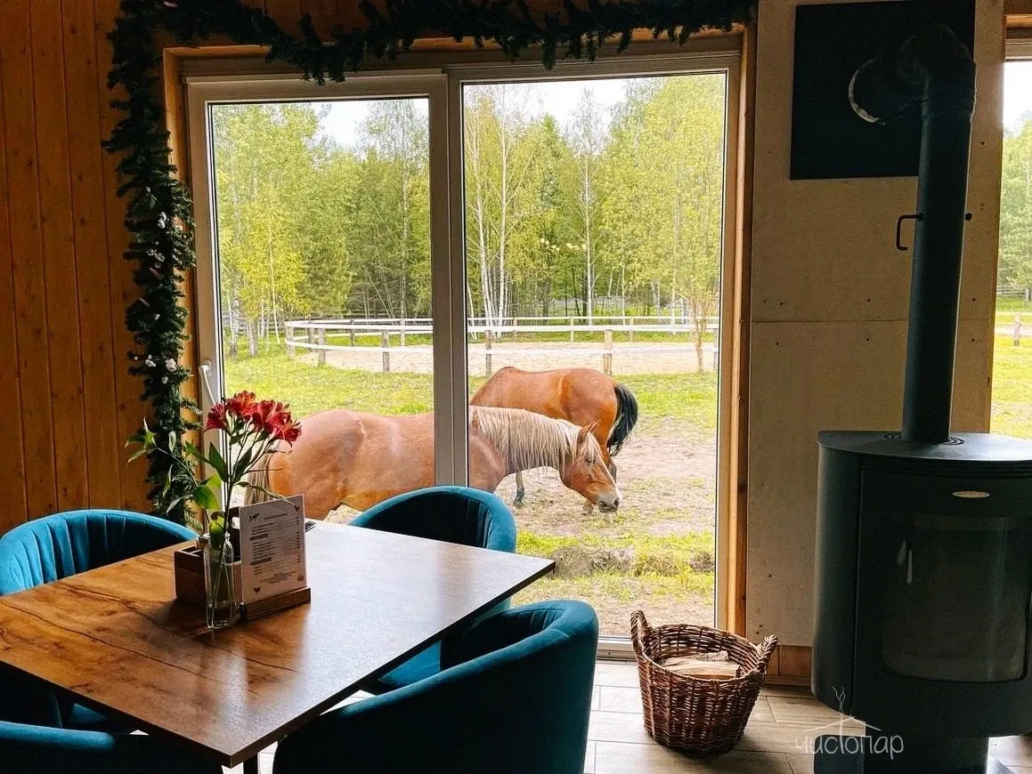 Открыто гостевое кафе. Есть возможность приобрести фермерские продукты с местной фермы.