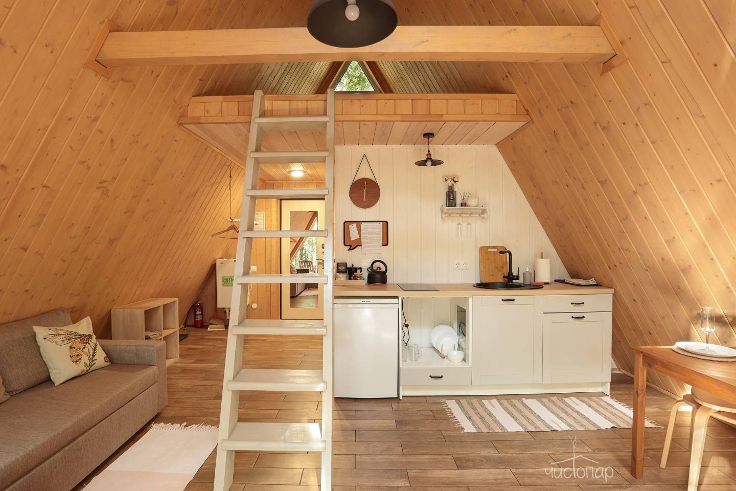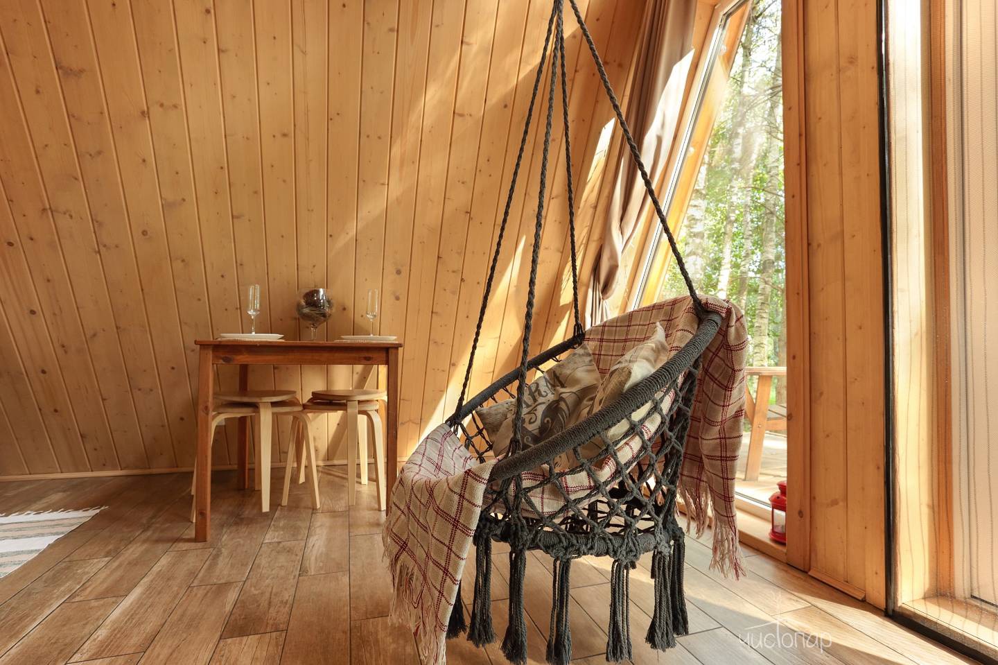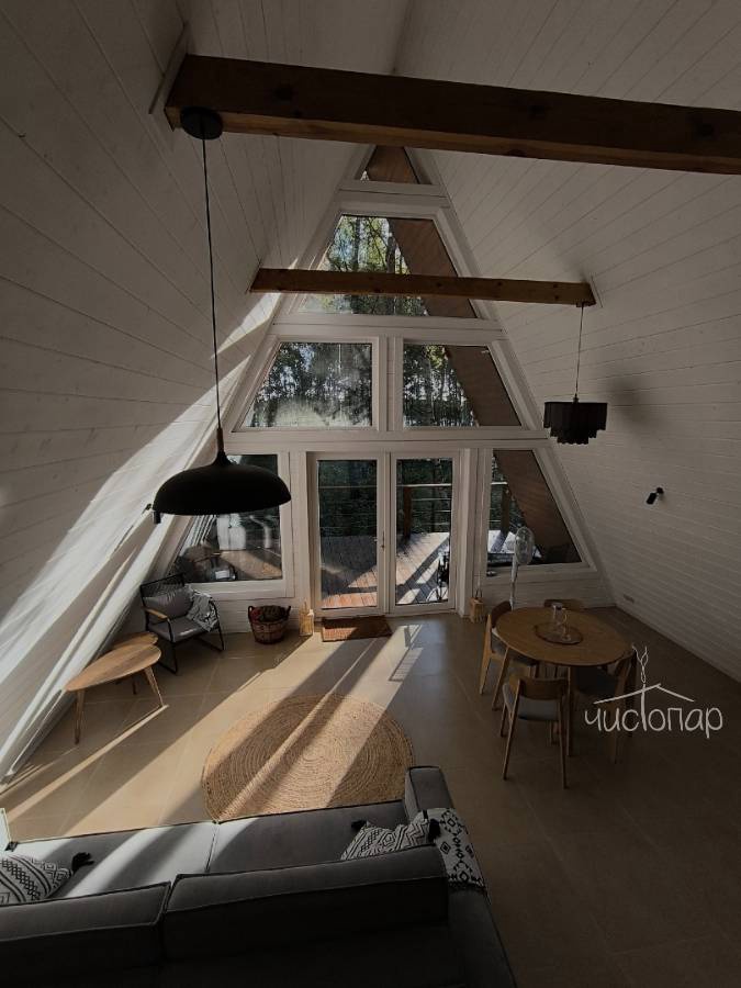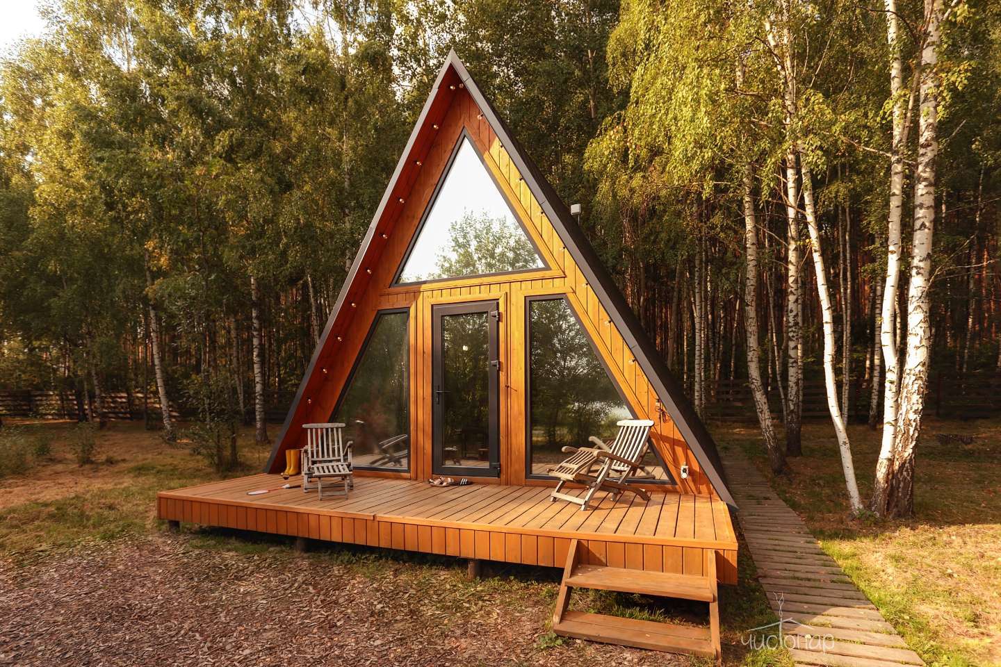 Треугольный домик со всеми удобствами. В доме размещаются 1 или 2 взрослых или семья с детьми до 4х человек.