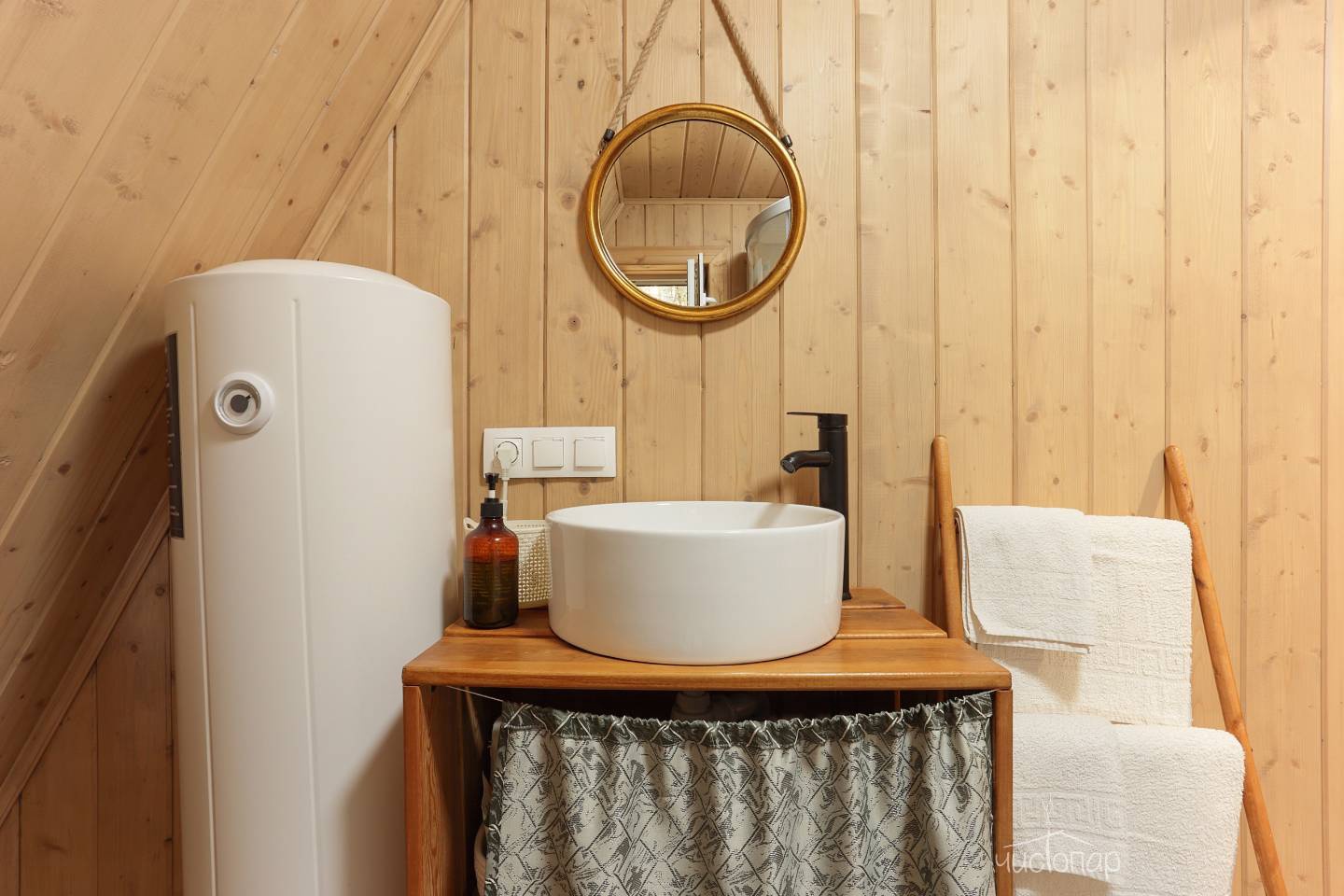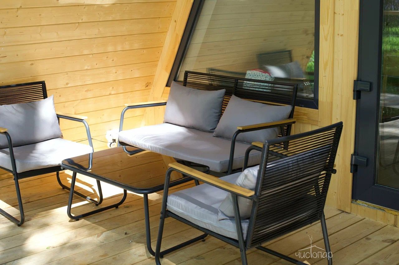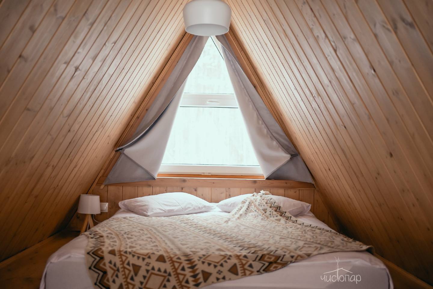 Треугольный домик со всеми удобствами. В доме размещаются 1 или 2 взрослых или семья с детьми до 4х человек.