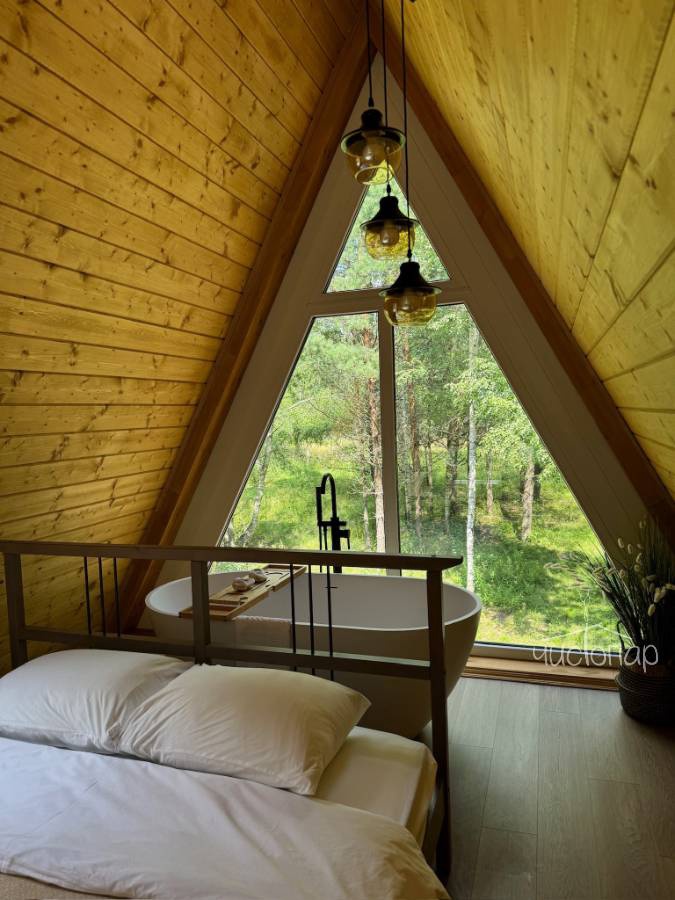 Глэмпинг «А-Ферма» - это 26 гектар единения с природой, пространство, куда вложена душа: уютные треугольные дома в окружении леса, озеро с невероятными закатами, ухоженная территория с дружелюбными домашними животными и гостевое кафе, в котором предлагают отведать вкусные блюда, приготовленные из фермерских продуктов.