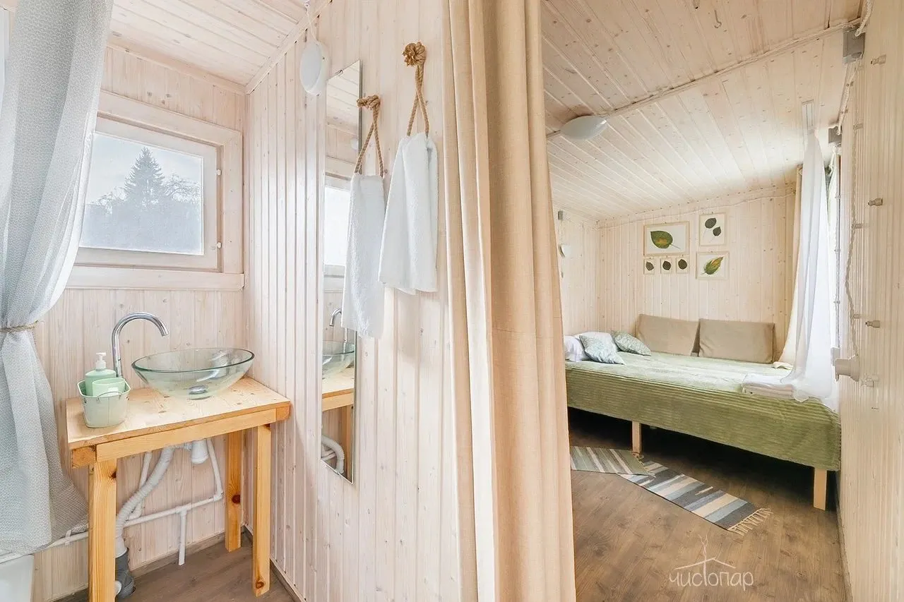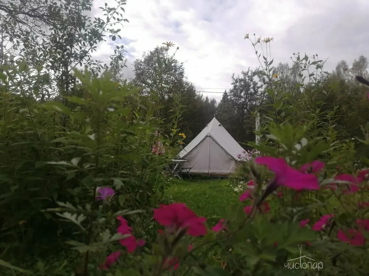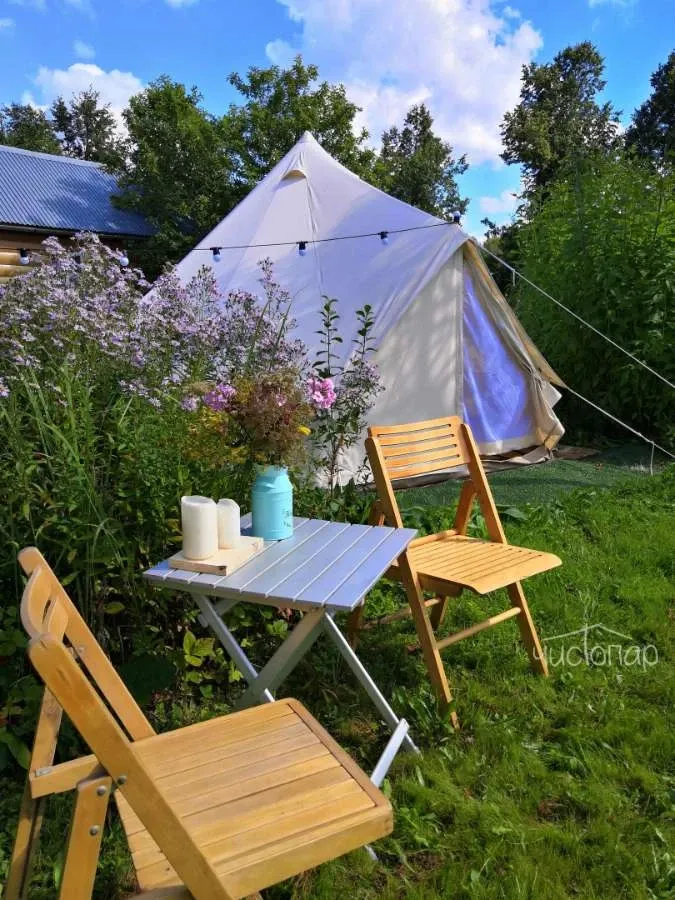 Гостей ждут три уютных минидомика с удобствами и три комфортных шатра. А еще баня, бассейн, костер и дикие поля и леса вокруг.