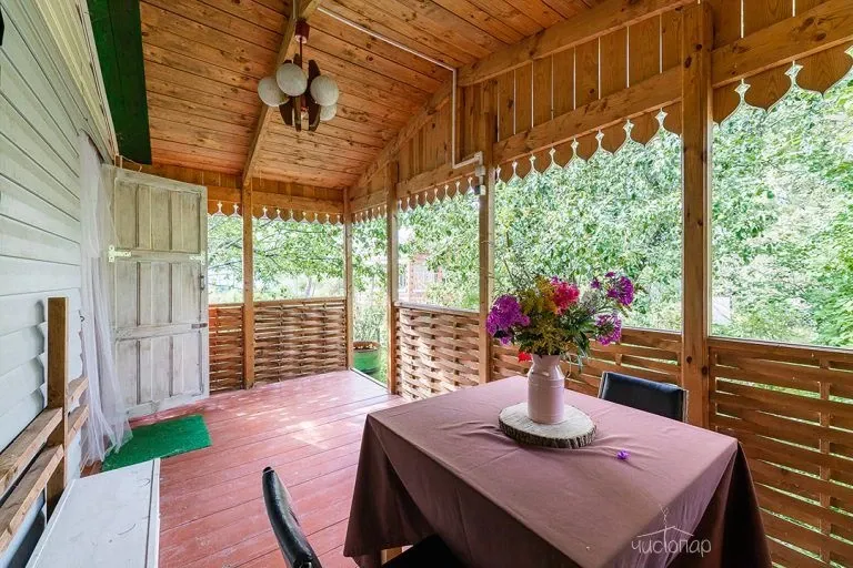 Маленький и уютный семейный глэмпинг «Дача» расположен на одном из участков очень старого дачного поселка. Здесь все кругом дышит негой. Огромные старые яблони, множество кустов смородины и крыжовника, обилие цветов.