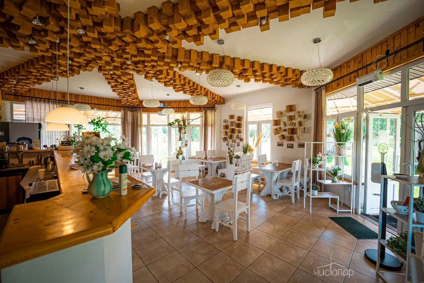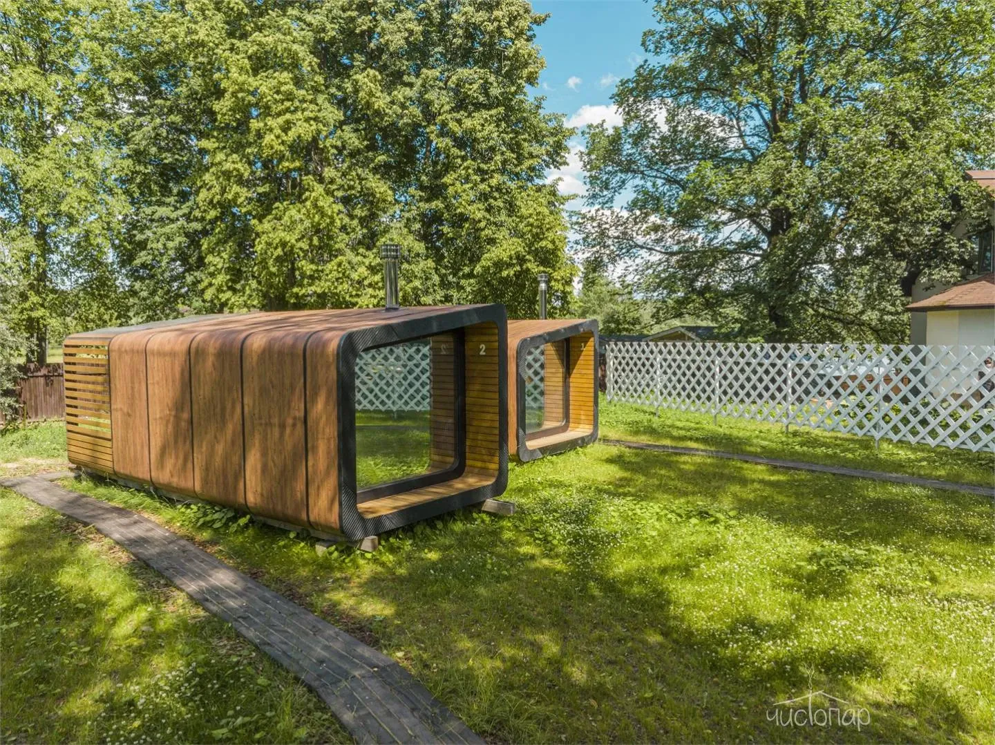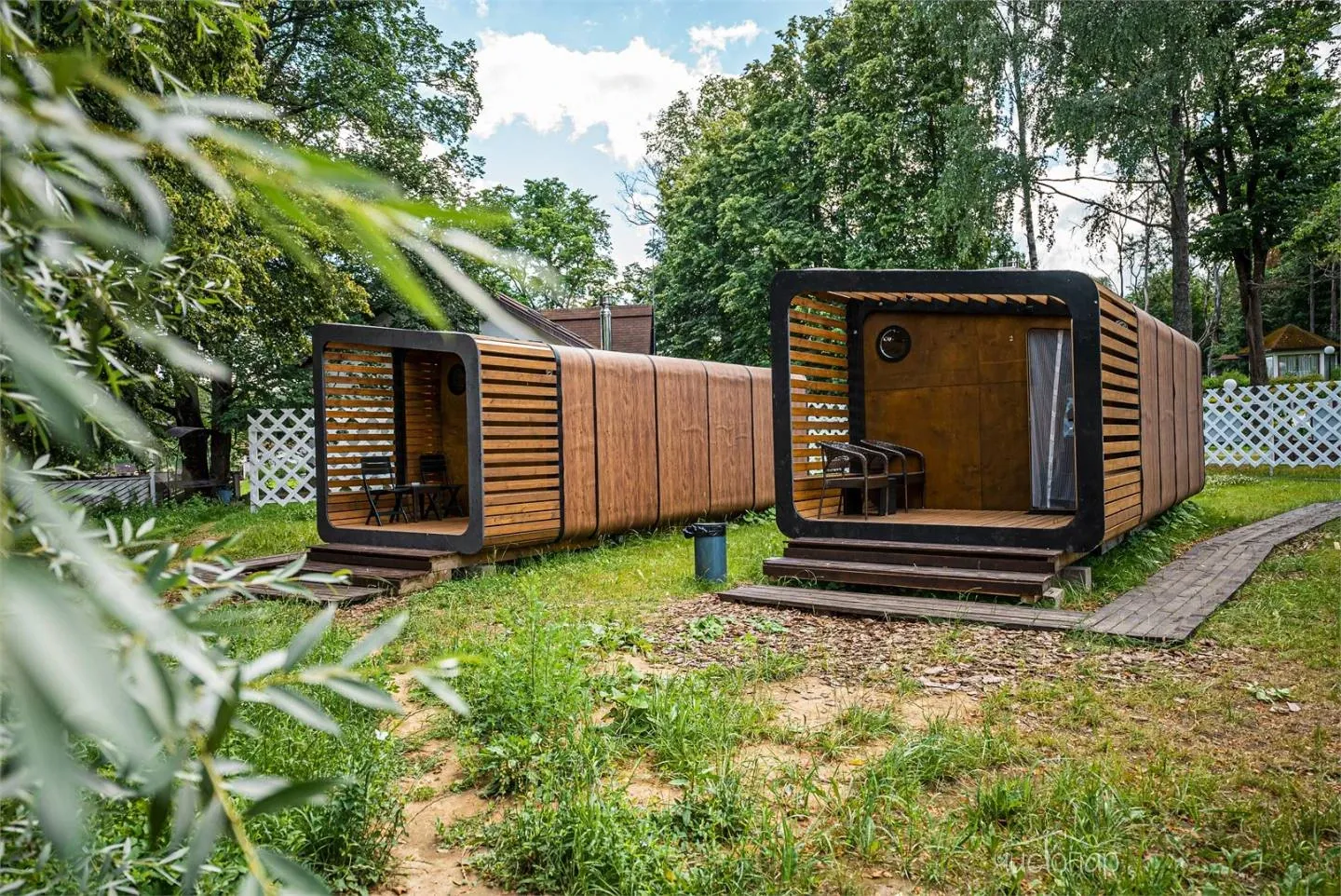 Гостей ждут двухместные и четырехместные номера, пропитанные ароматом дерева и полевых цветов. А также для проживания предоставляются два модульных домика.