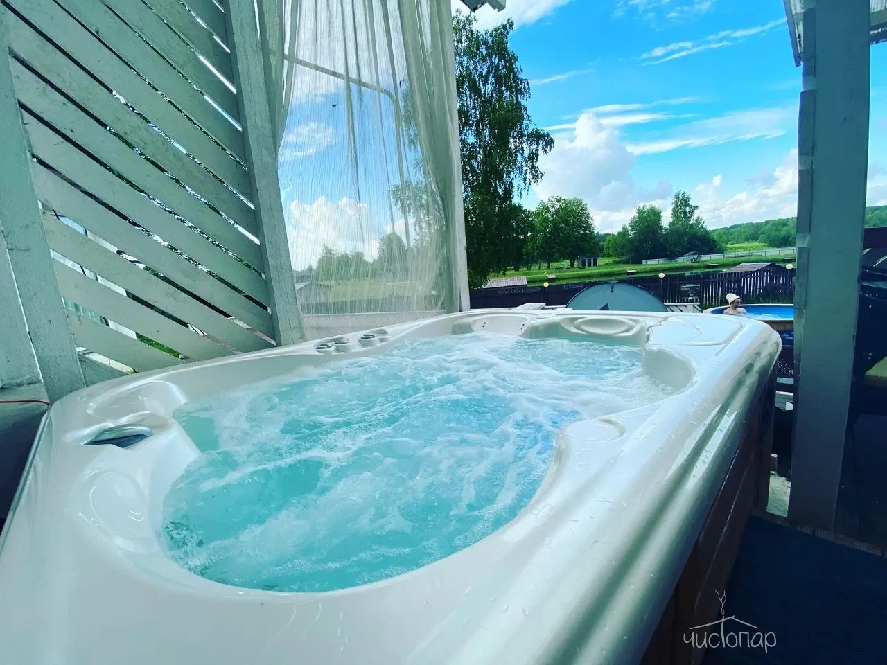 На территории базы отдыха: SPA-комплекс с русской баней на настоящих дровах, уличным джакузи и уличной теплой купелью.