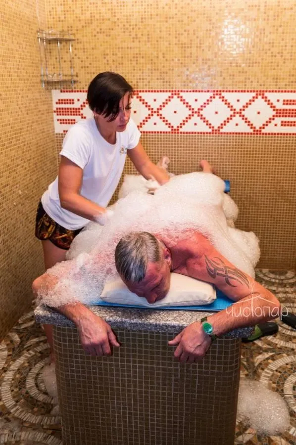 Для вас все включено: парьтесь в традиционных русских парных, грейтесь на программах общего пара, плавайте в большом теплом бассейне или прохладной купели, расслабляйтесь в турецком хамаме и отдыхайте в просторной зоне отдыха.