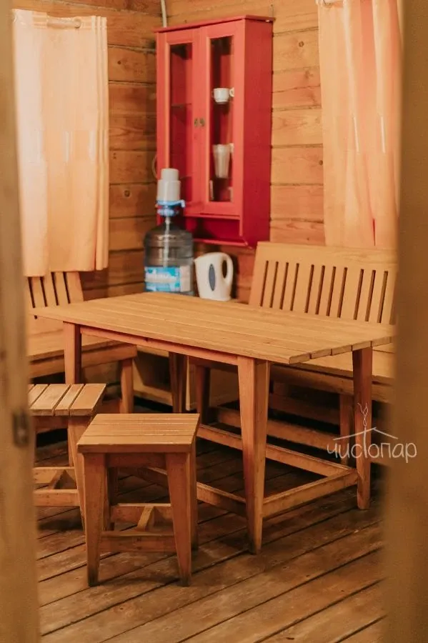 - В стоимость входит: чайный набор посуды, чайник, простынь, полотенце, кулер с водой, TV, березовый веник (1 шт.)