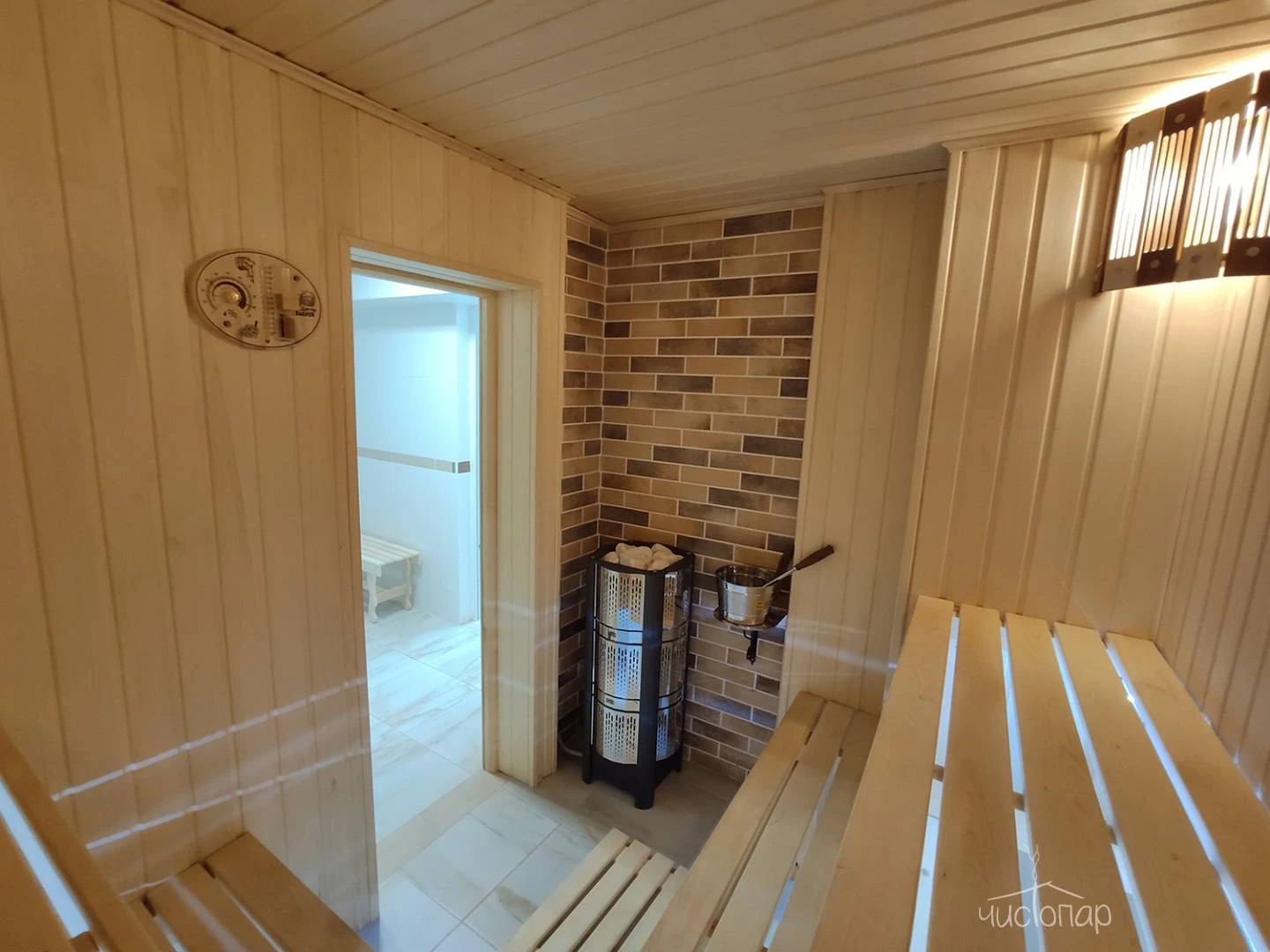 В услугу сауны входит: финская сауна, хамам, душ, туалет, прихожая-раздевалка, телевизор, диван, стол с сиденьями (до 8 человек), шапочки, тапочки, простыни, посуда на 8 человек, раковина со столешницей.Читать далее