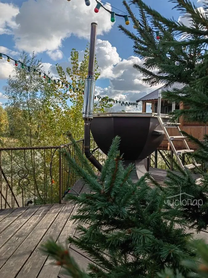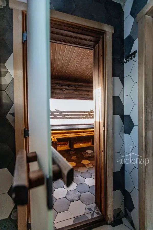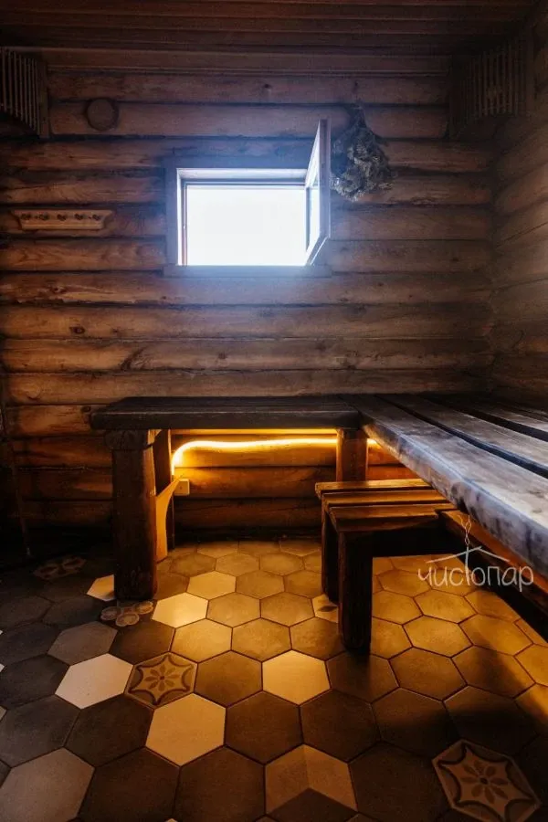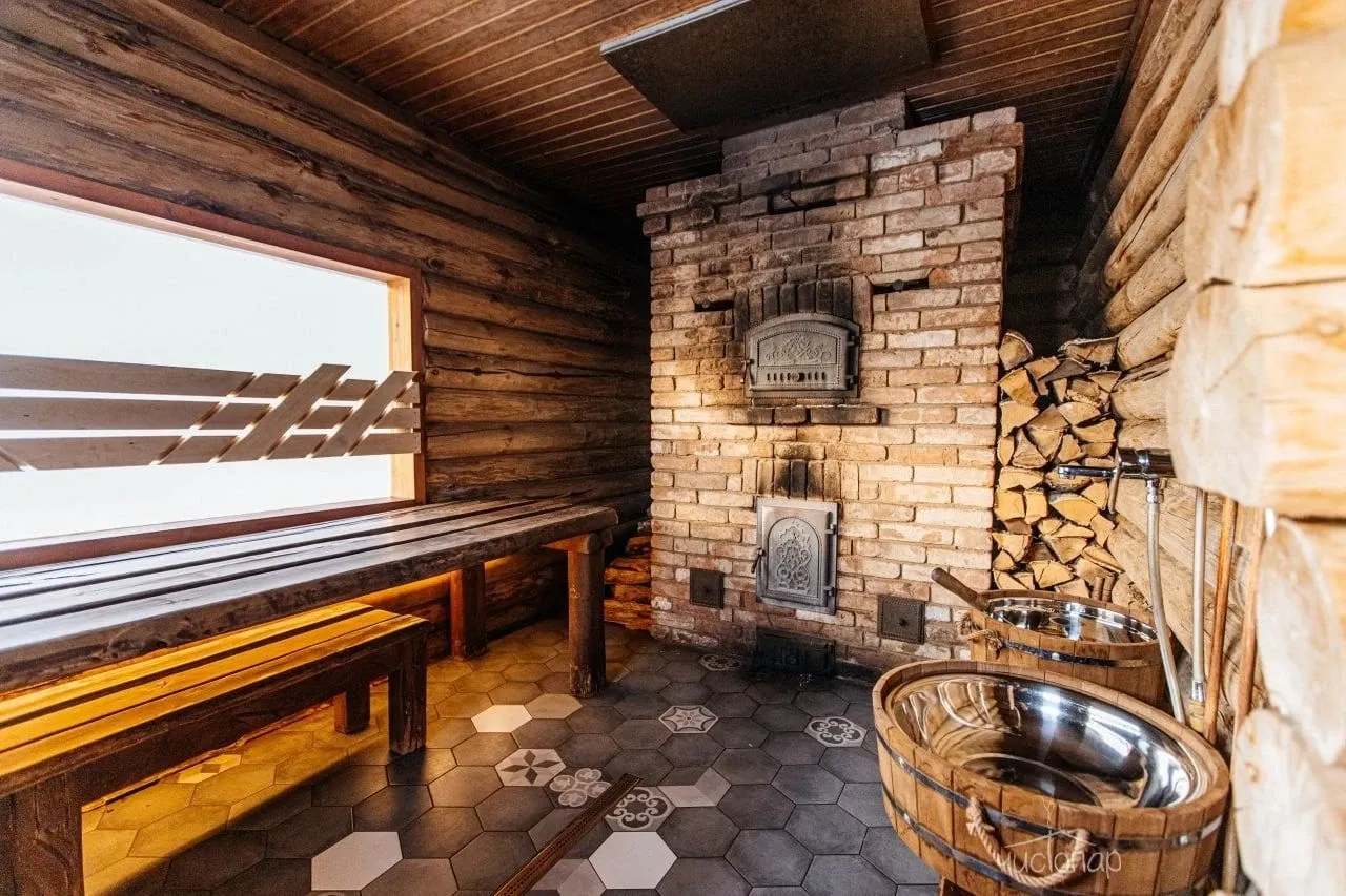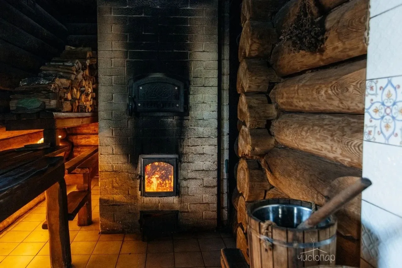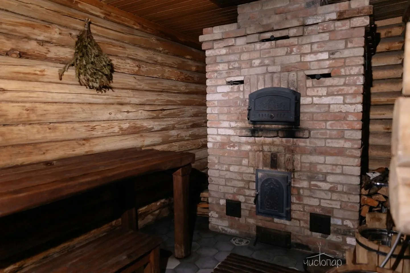 Традиционные русские бани по-чёрному и по-серому. Сруб собран без единого гвоздя по технологии наших предков. Лёгкий пар и свежие веники. Предлагаем травяной чай с мёдом и банное меню.