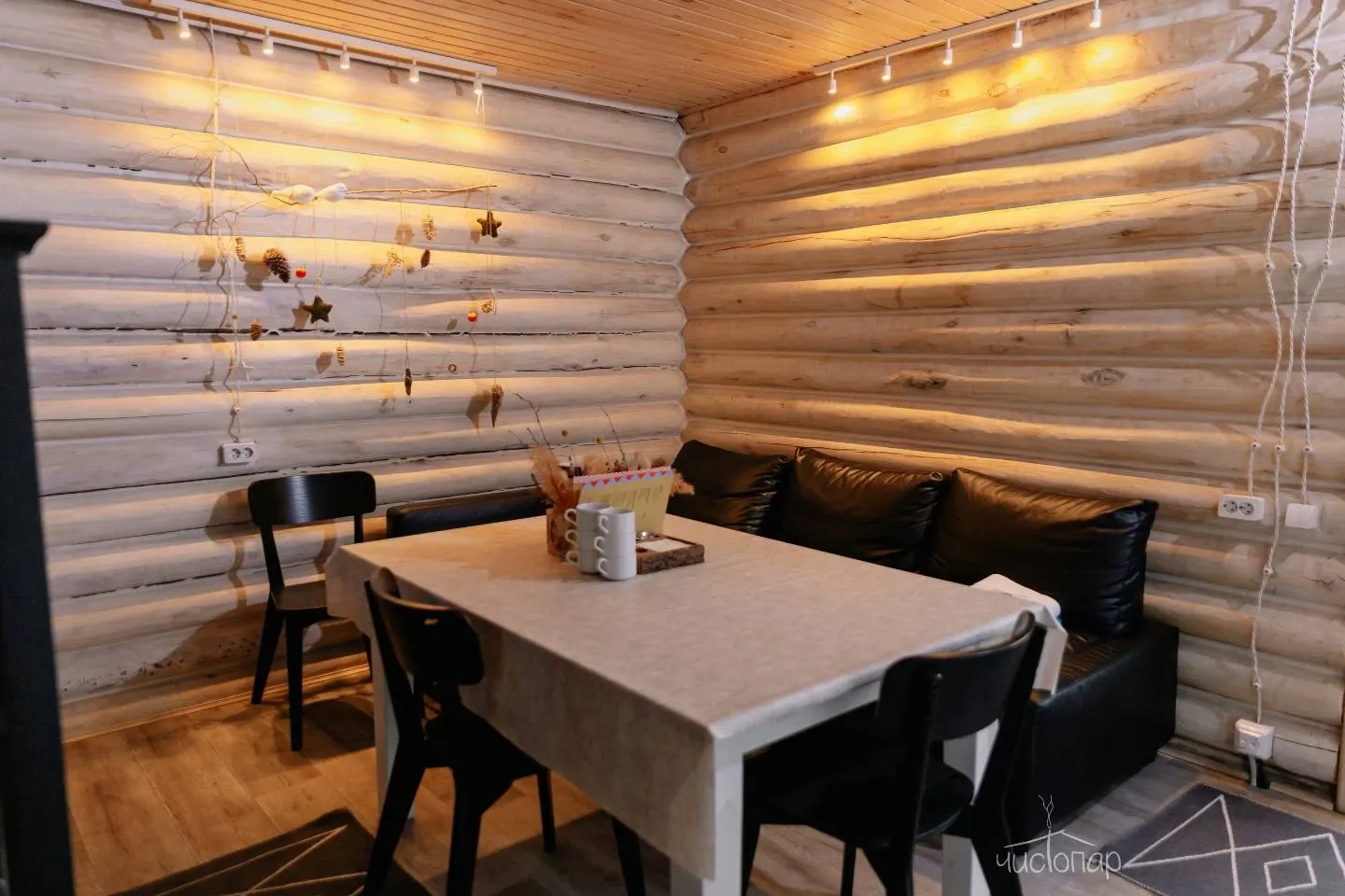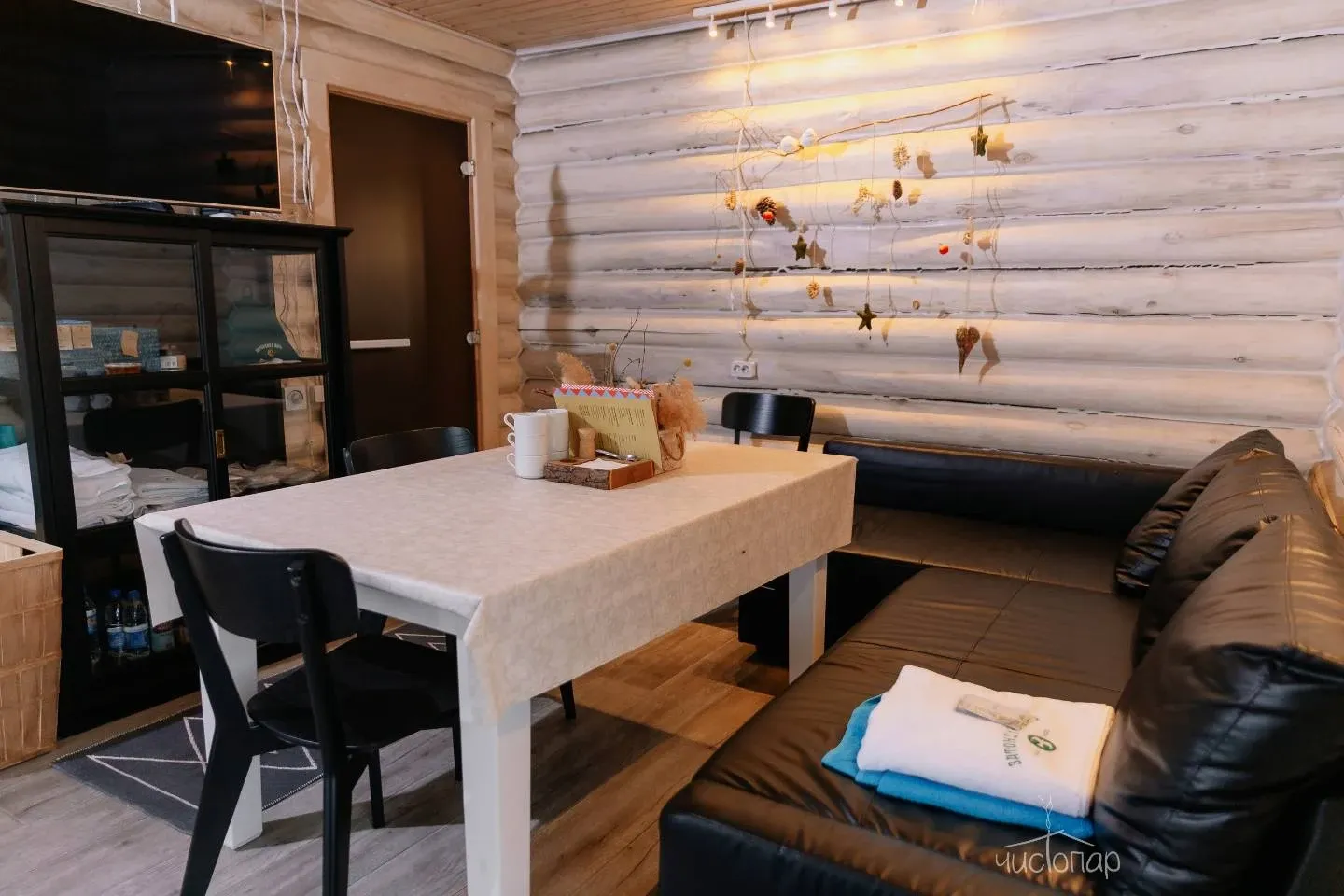 В бане созданы все условия для комфорта. В ней размещаются: санузел, просторная комната отдыха с деревянной мебелью, душ и сама парная. В комнате отдыха коротают время между посещениями парной, общаются с друзьями, пьют чай или квас. Дополнительно можно заказать: безалкогольные напитки и банное меню, взять одноразовые тапочки, полотенца, простыни, "шапки-будёновки", использовать ароматические масла, берёзовые веники и насладиться чаем с мёдом, а также воспользоваться услугами профессионального парильщика и попробовать различные программы парения. В летний период можно окунуться в реке, а зимой – в проруби, можно выйти на террасу с видом на реку.