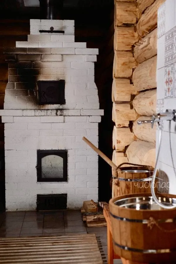 Баня по-чёрномуПечь бани по-чёрному, в классическом варианте, представляет собой открытый очаг над которым расположена решётка для камней. Камни нагреваются непосредственно пламенем. Дымоход в бане отсутствует, поэтому дым выходит через парную в двери, окна и специальные отверстия под потолком. Такая печь называется банная печь по- чёрному с открытой каменкой. Температура камней может достигать 700℃, что для открытого источника не совсем безопасно. В нашей бане по-чёрному, для безопасности, используется банная печь по-чёрному с закрытой каменкой и принципиально от банной печи по-серому не отличается.