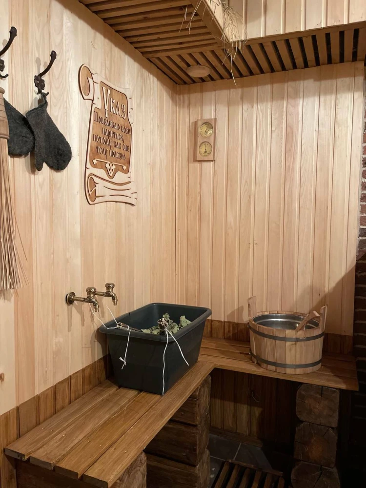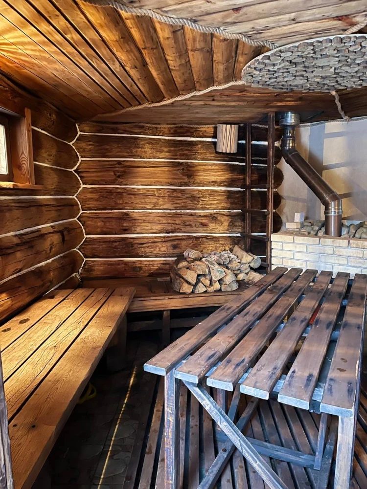 - Банный домик с русской печью, большим дубовым столом и атмосферой для долгих разговоров.