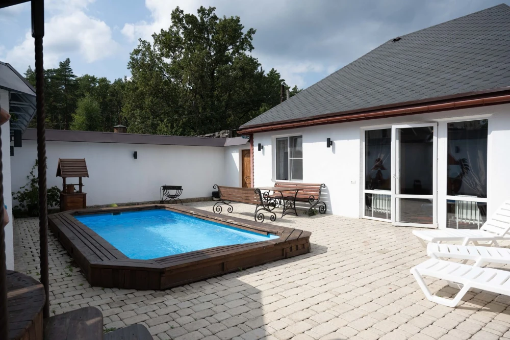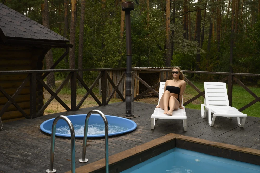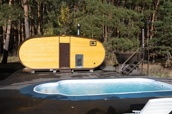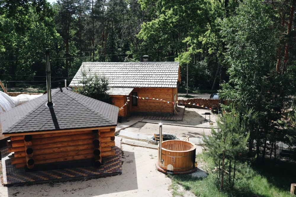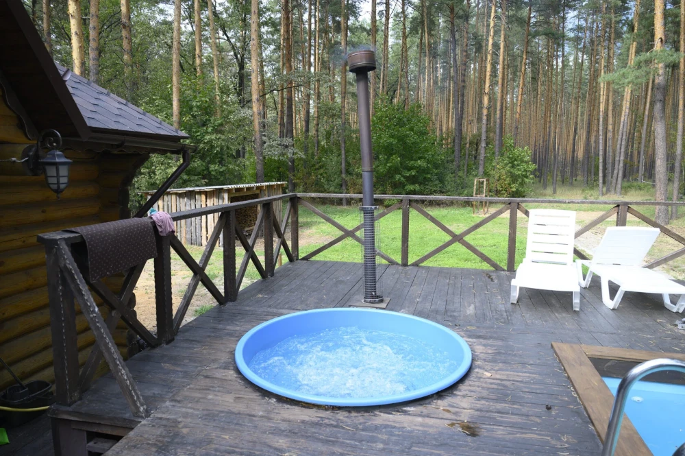 Банный комплекс «Прогоняющая грусть»В комплексе находится банный домик с видом на лес с парной на дровах, душ и место для отдыха, джакузи на дровах с видом на лес, бассейн под открытым небом (в летнее время года). Так же в домике индивидуальный санузел, тв и банные принадлежности.