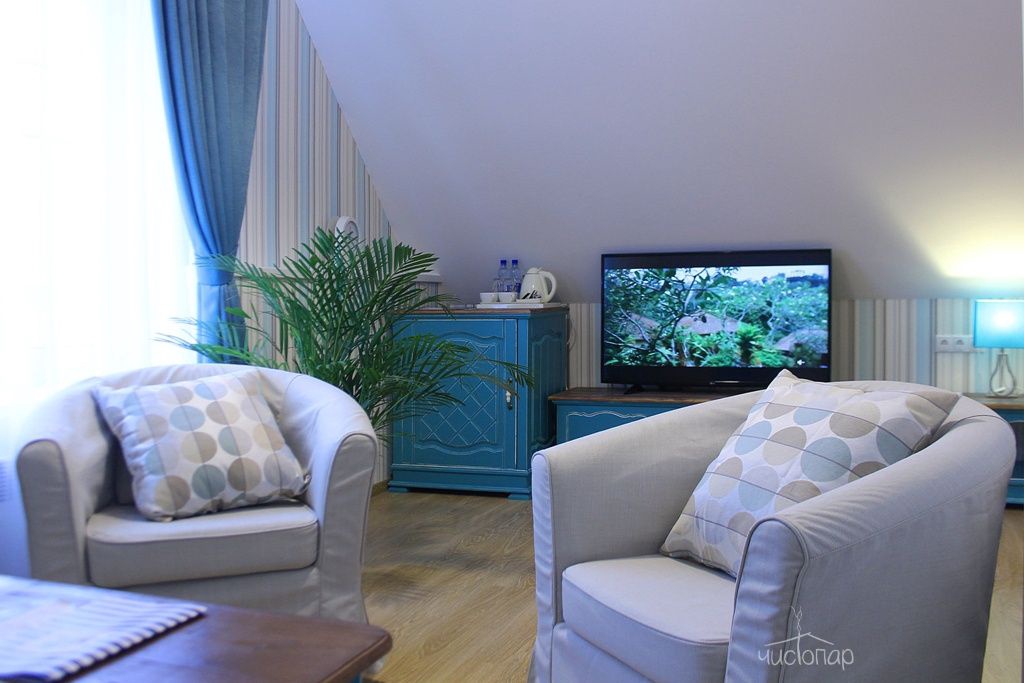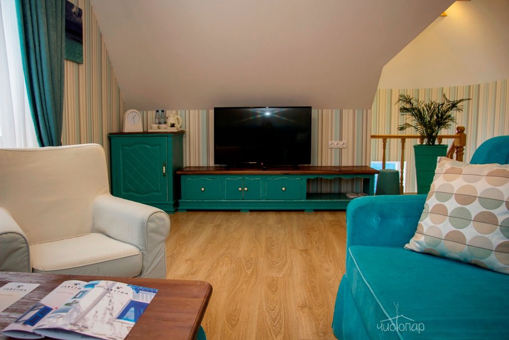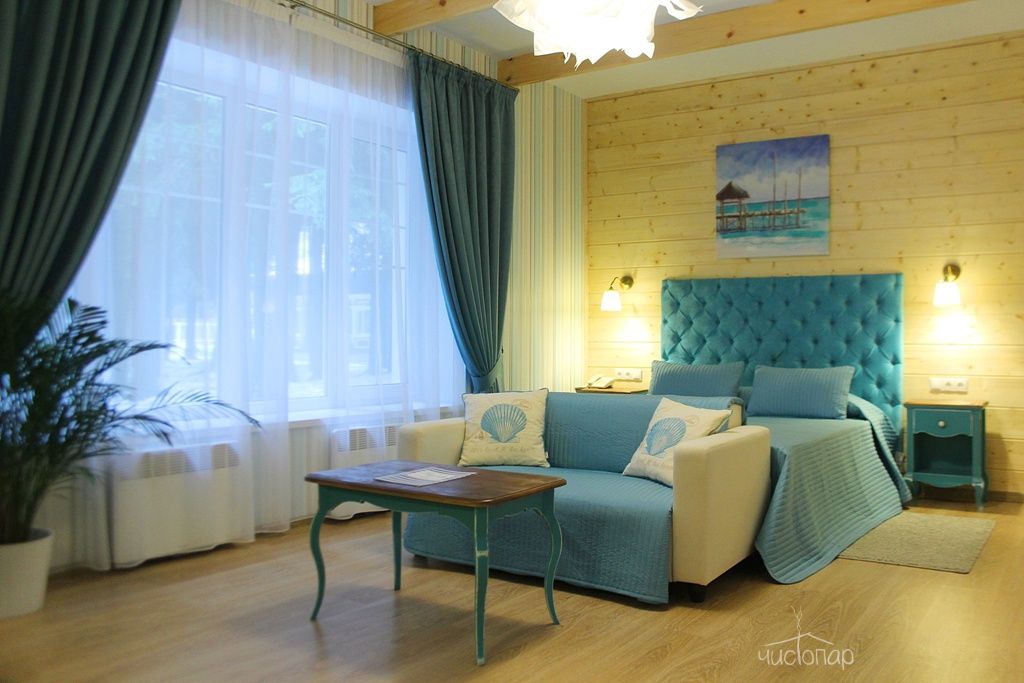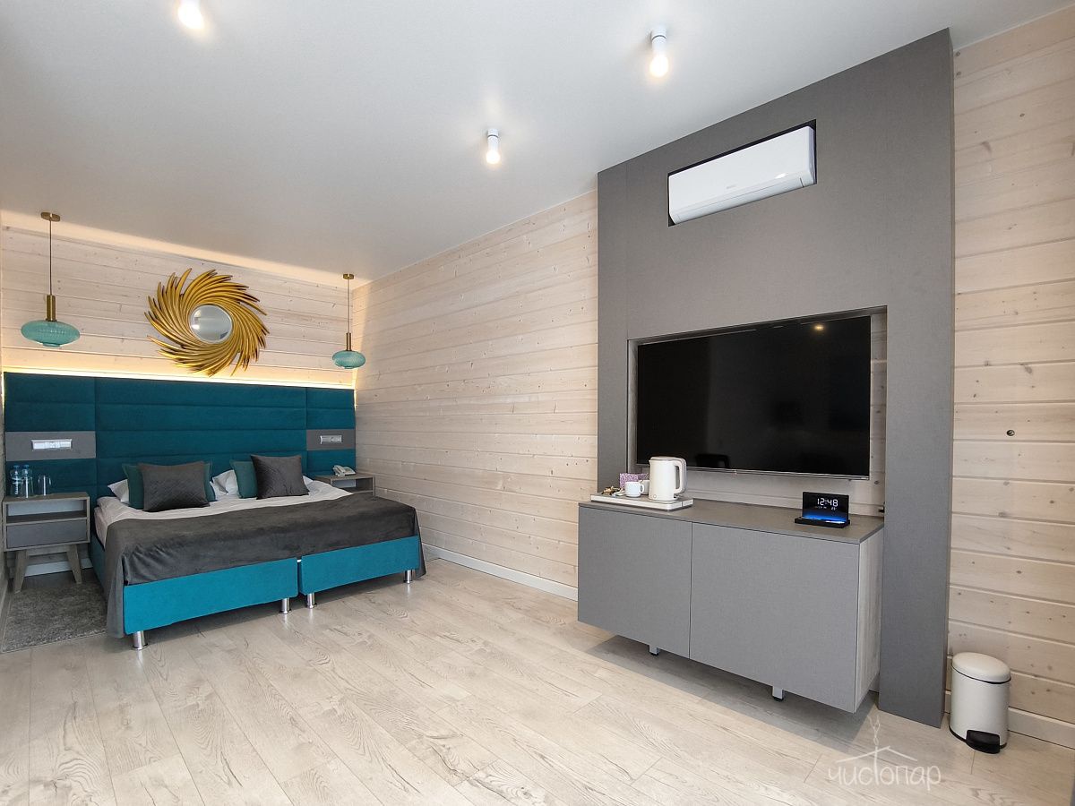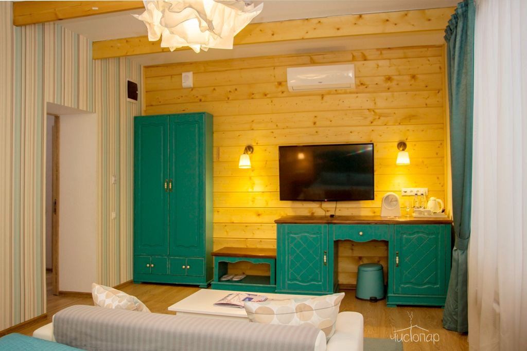 Номерной фонд отеля включает разнообразные варианты размещения: от роскошных «Люксов» и уютных «Полулюксов» до стандартных номеров и уникальных предложений, таких как «Бригантина», глэмпинг и «Семейный» дом.