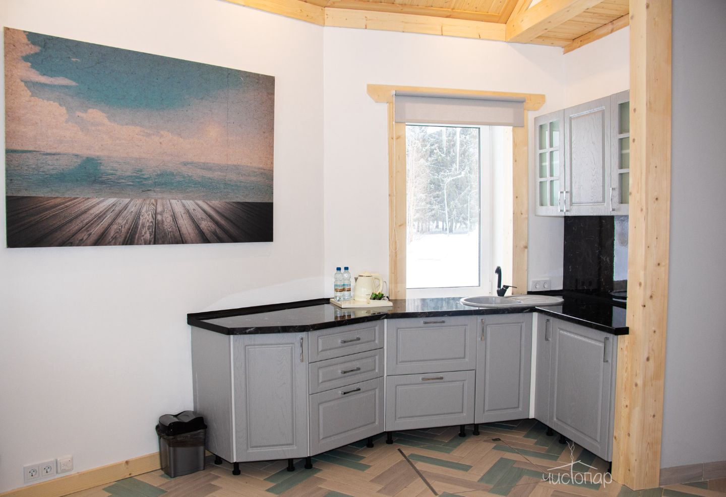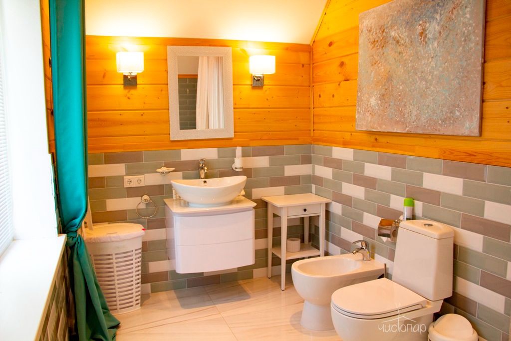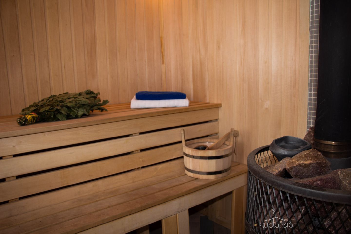 К услугам гостей: душевая с ушатом, парная, комната отдыха со спутниковым ТВ, веранда с прилегающей зоной барбекю, фетровая шапка, полотенце.