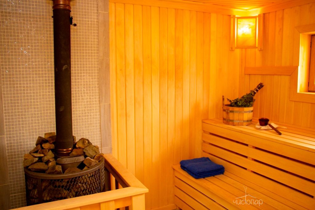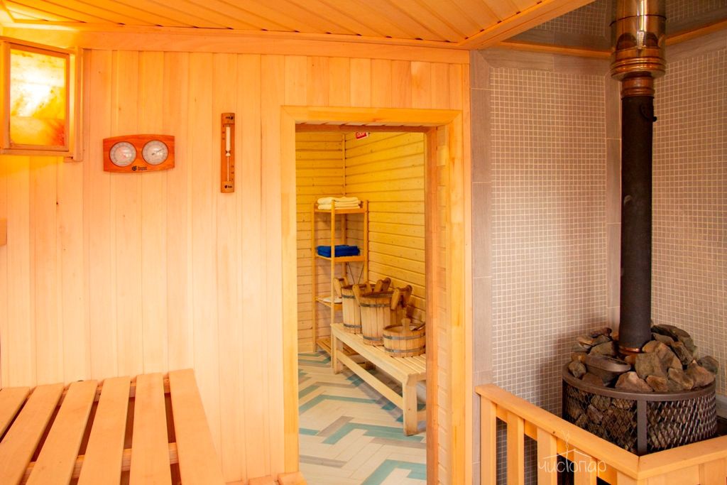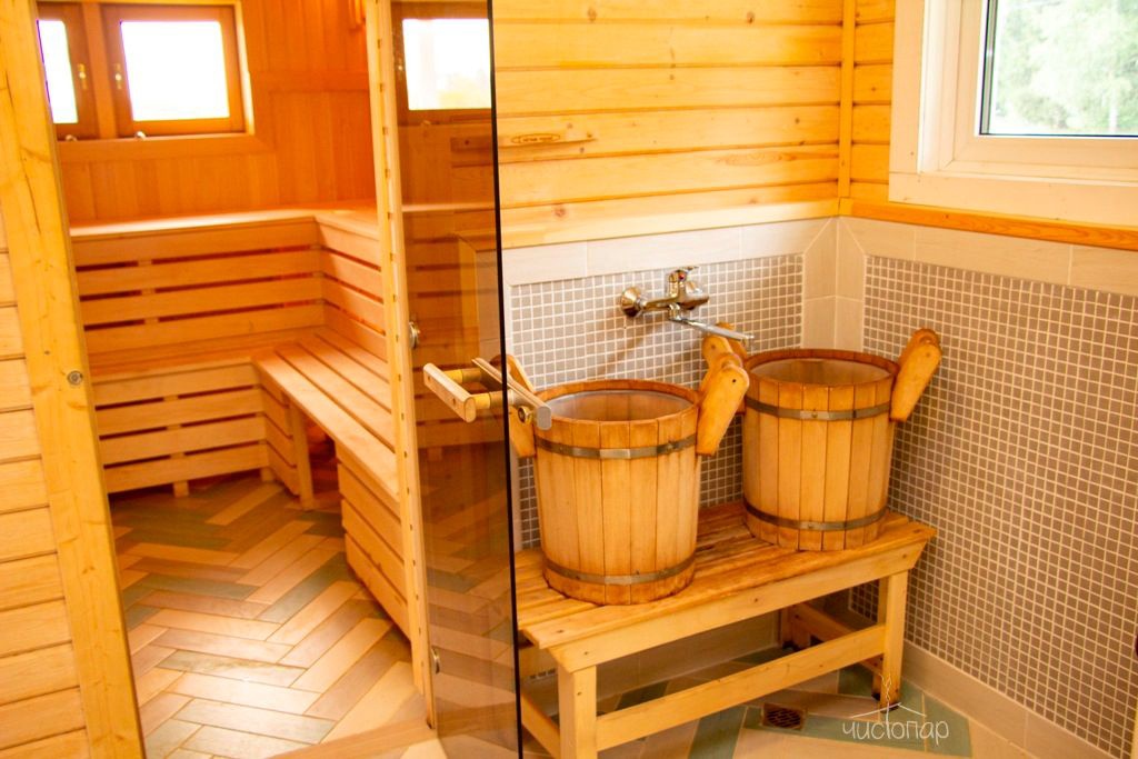 Русская баняК услугам гостей: душевая с ушатом, парная, комната отдыха со спутниковым ТВ, веранда с прилегающей зоной барбекю, фетровая шапка, полотенце.