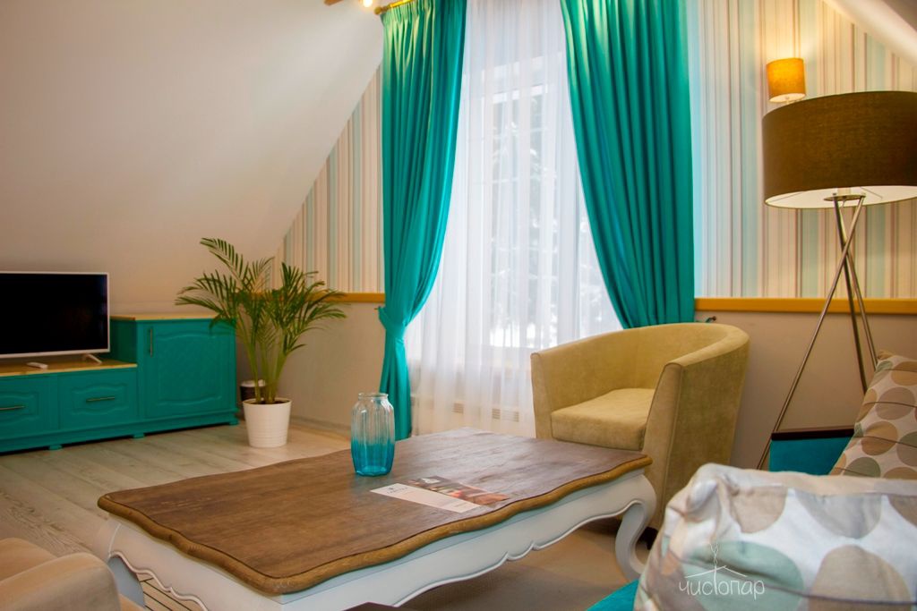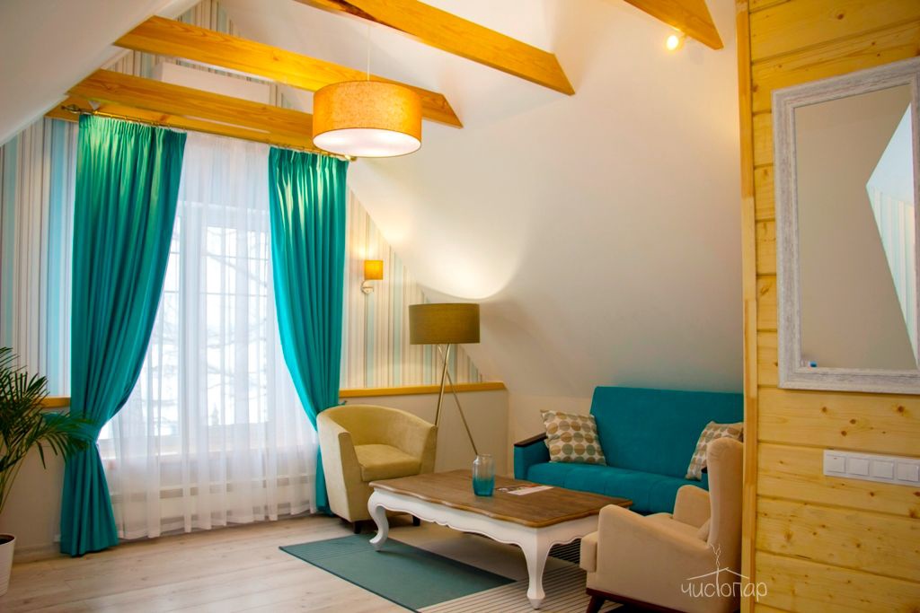Номерной фонд отеля включает разнообразные варианты размещения: от роскошных «Люксов» и уютных «Полулюксов» до стандартных номеров и уникальных предложений, таких как «Бригантина», глэмпинг и «Семейный» дом.