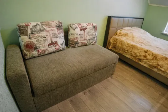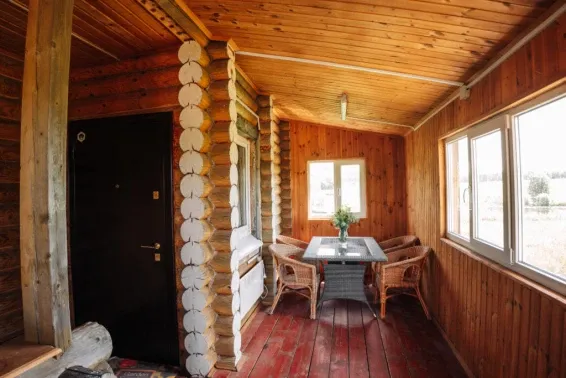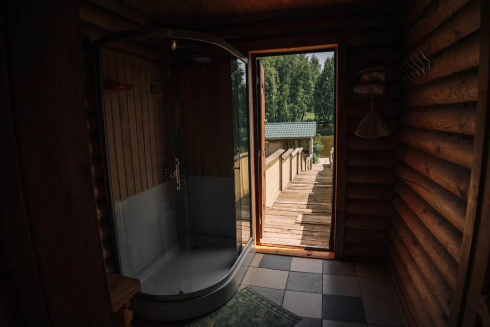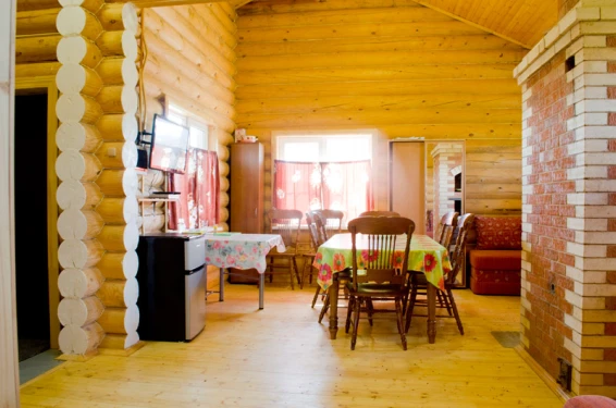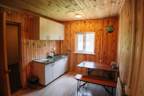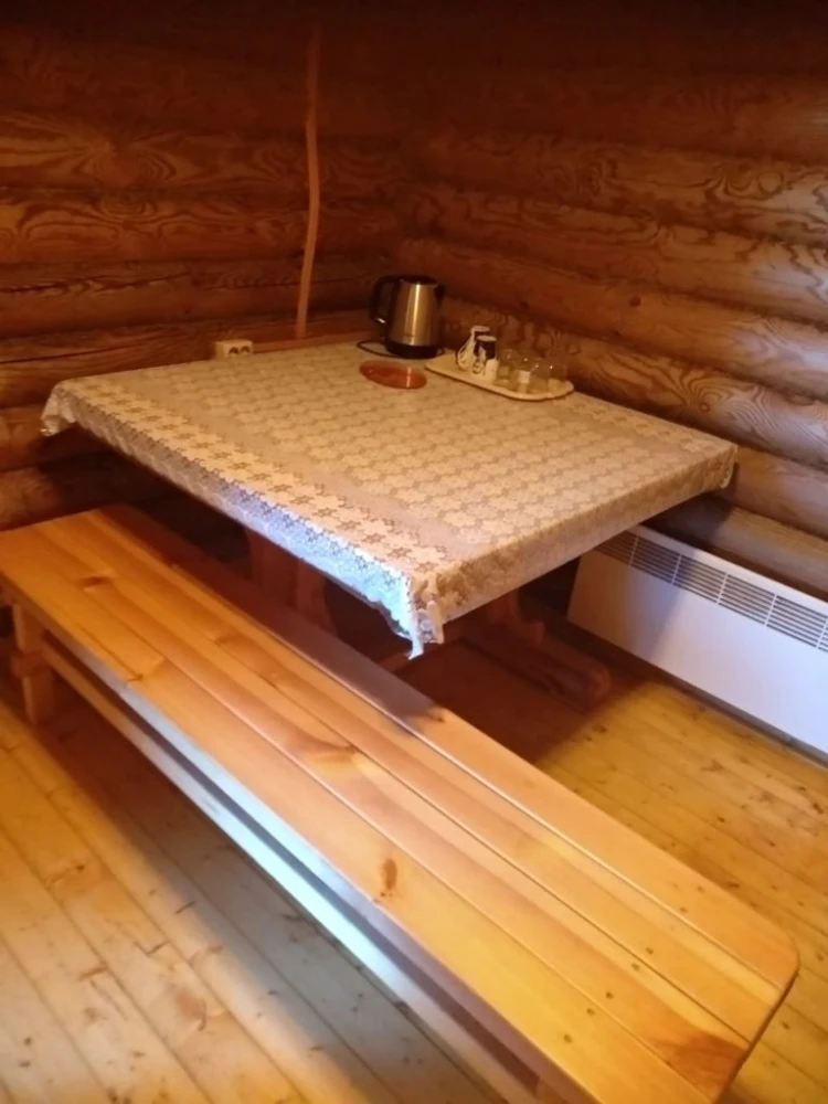 Коттедж баня 1/2х местныйВ бане небольшая гостиная с видом на озеро и мини-кухня (электроплитка, СВЧ, ХЛ, необходимый набор посуды) ТV, Wi-Fi, двуспальный диван, русская баня с выходом на озеро (топится по желанию гостей, одна топка раз в 2 дня включена в стоимость).