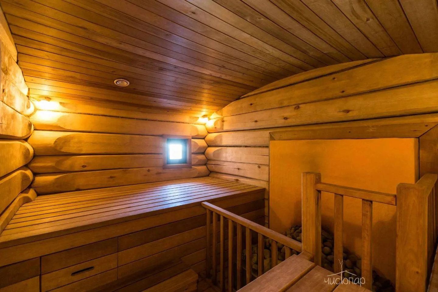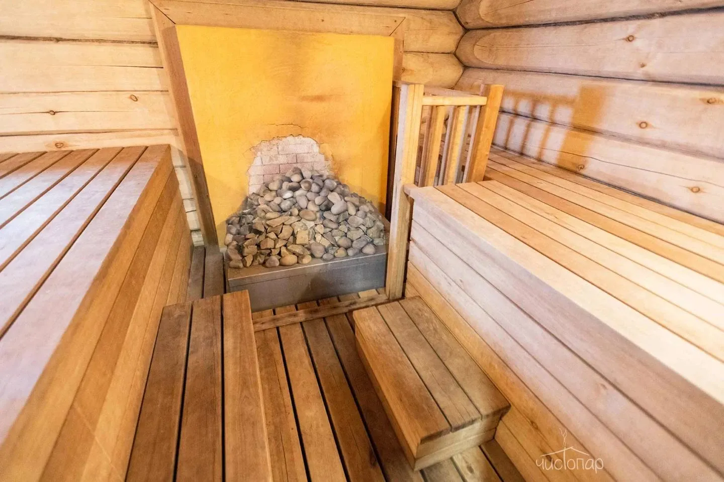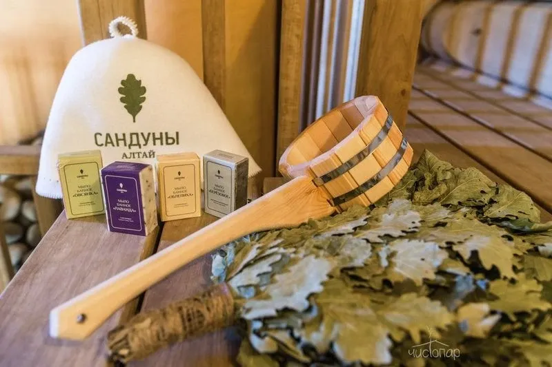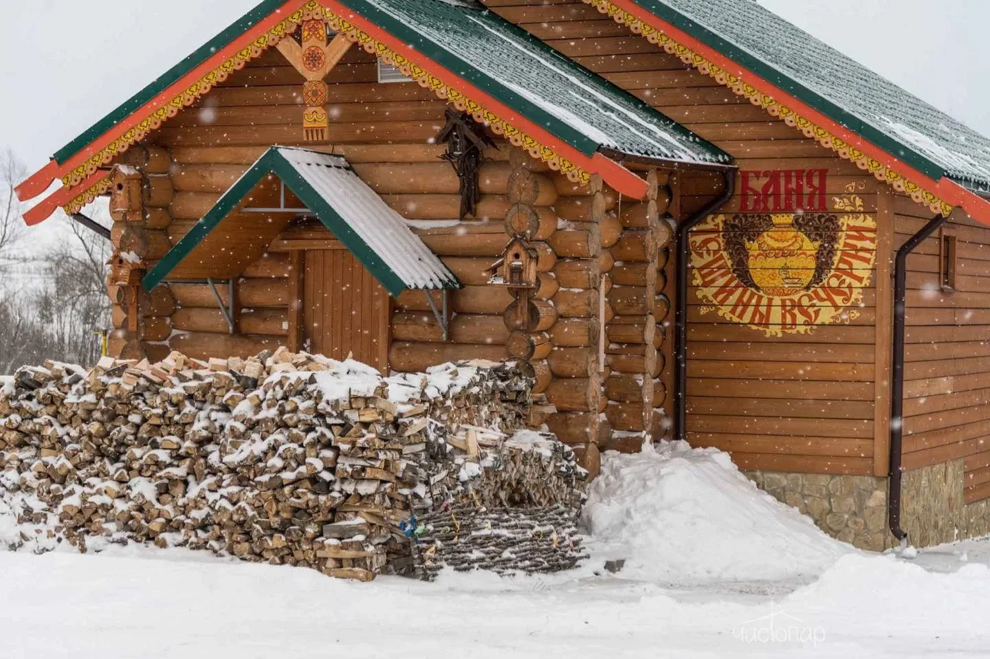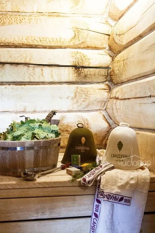 Банные срубы из красноярской осины и печами, выложенными мастерами из московских Сандуновских бань.