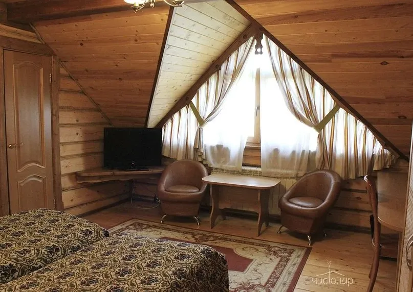Двухместный номер с сауной и камином в гостевом домеКомфортный номер в деревянном коттедже с двуспальной кроватью, многоканальным телевидением и мини-баром (не входит в стоимость номера). В номере находится камин, который создает уют и тепло. В ванной комнате расположены: мини-сауна, удобная душевая кабина и туалетные принадлежности. Махровые халаты входят в стоимость номера.Читать далее