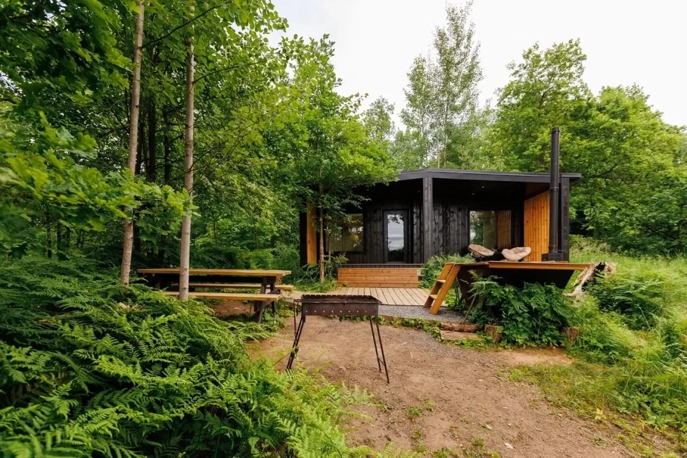 Природно-туристический комплекс «ЮХРО» находится в 15 км от Нижнего Новгорода, на берегу живописного озера. В глэмпинге семь домов: два больших, два домика на дереве, три экодома. Все дома с панорамными окнами и видом на озеро расположены в трофейной зоне, возможна рыбалка с собственного мостка.