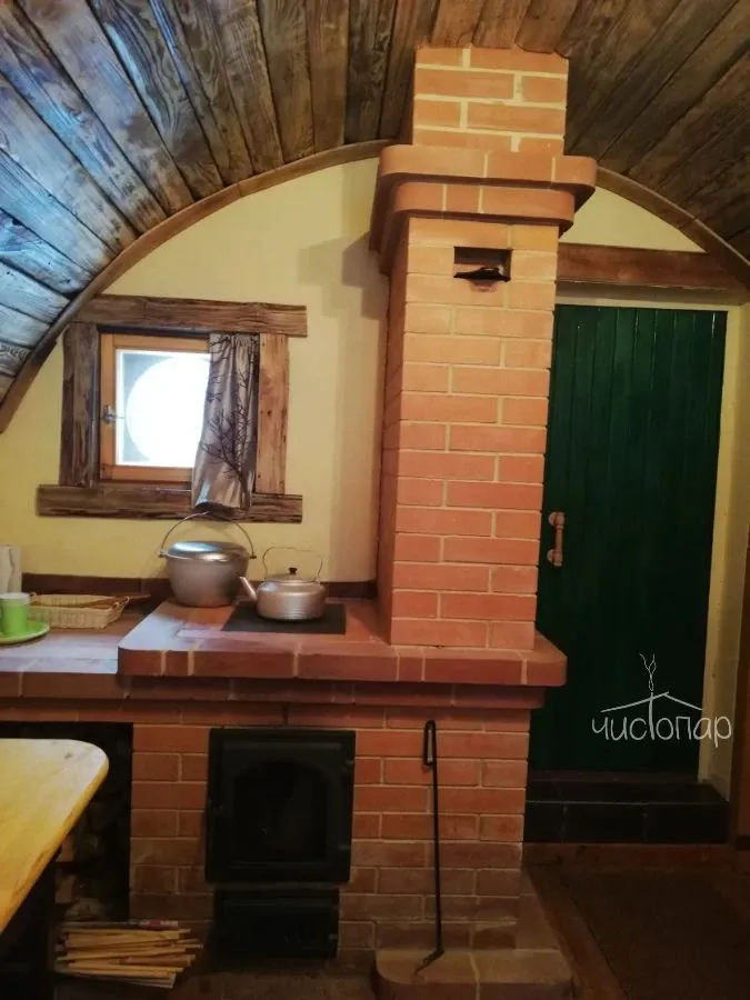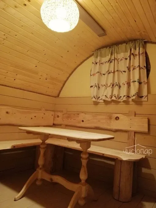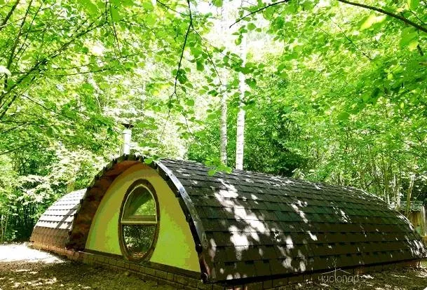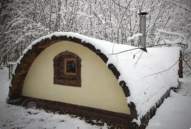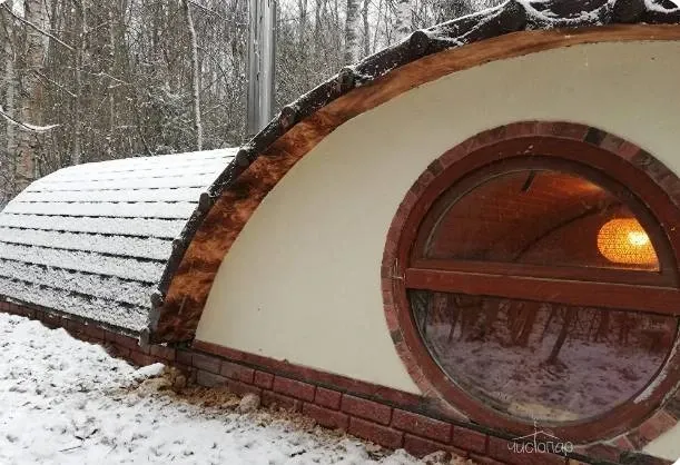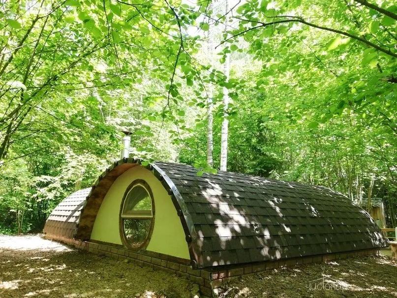 Гостей ждут меблированные домики-норы с дровяной печью и круглым окном. Вид сквозь него на густой лес, сидя с чашкой травяного чая у потрескивающего камина.