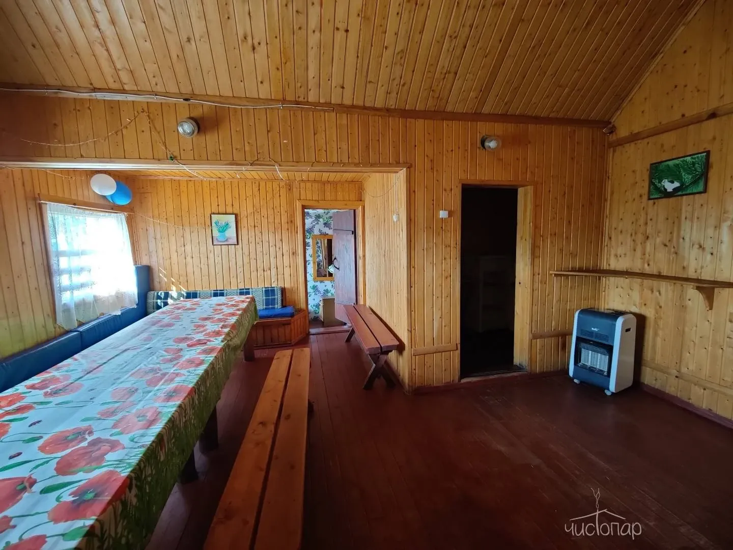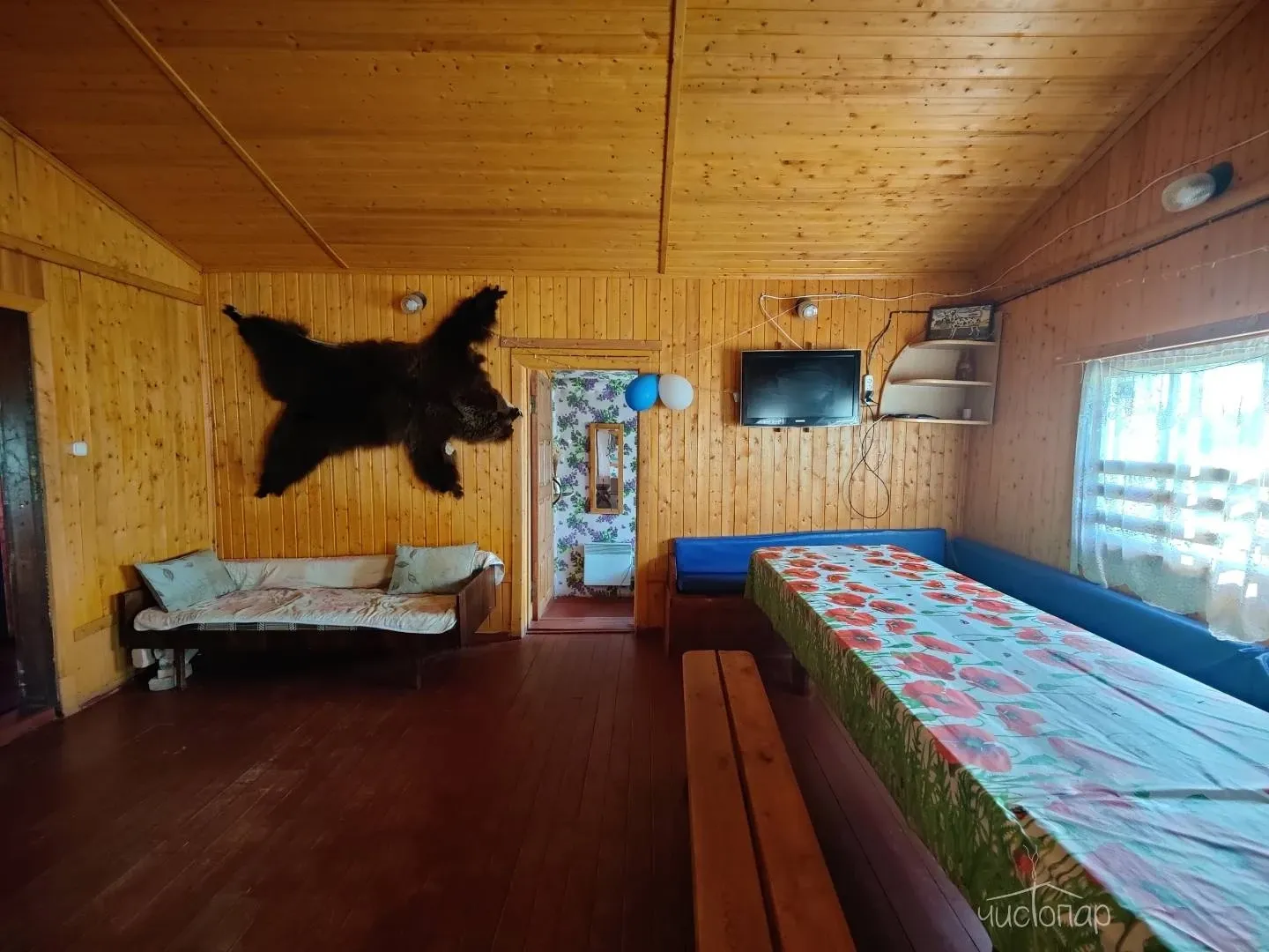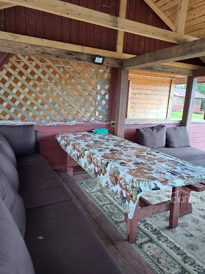 Большой банкетный гостевой домДом может вместить до 30 человек за стол и 12 человек на ночь (шесть отдельных спален с большими кроватями). Имеет отдельную кухню, свой выход к воде и большую беседку с электричеством. В стоимость входят мангал, шампура, чайник, питьевая вода, микроволновая печь и телевизор.