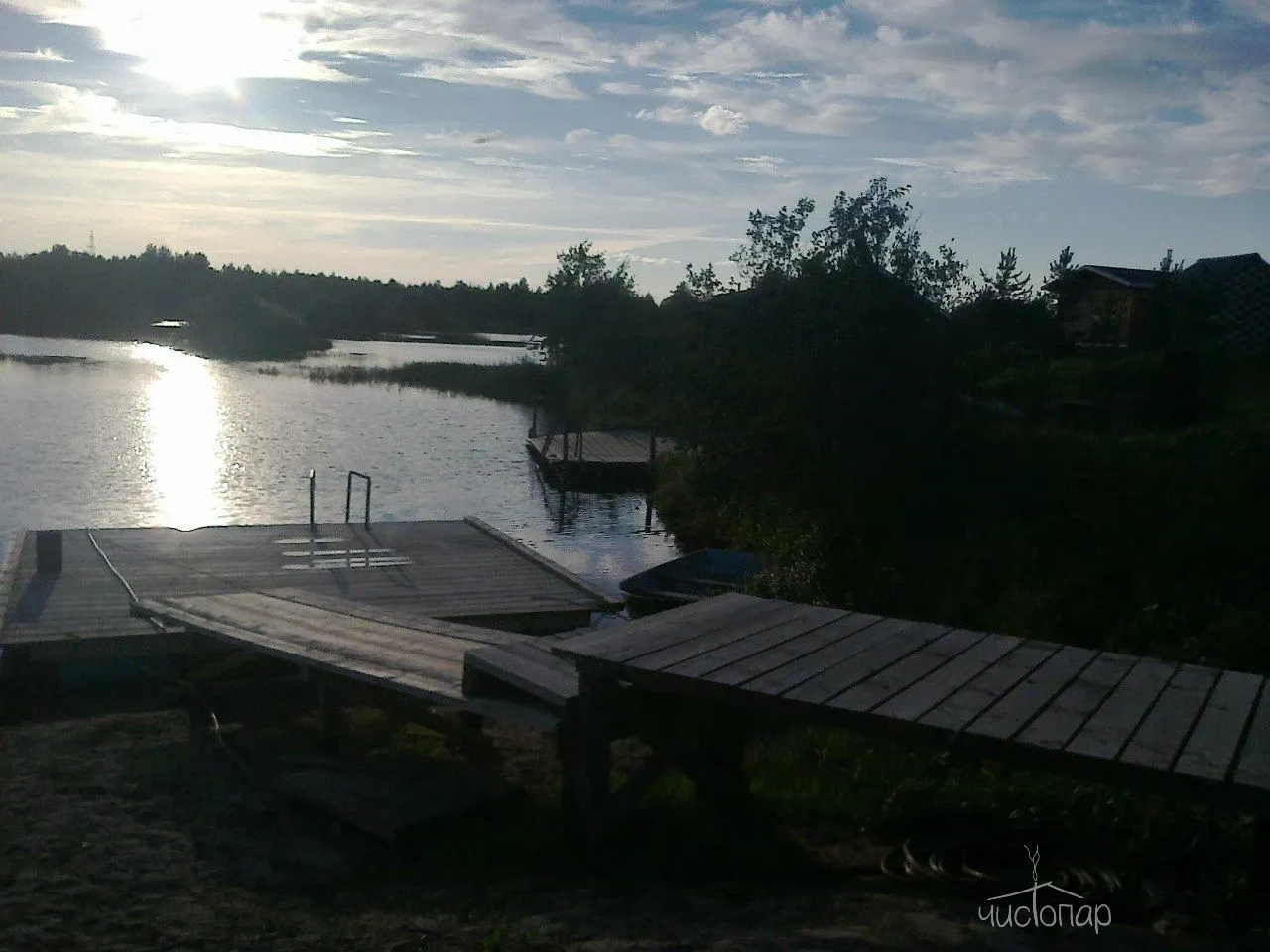 Небольшая семейная база отдыха «Поморская усадьба». Тишина, спокойствие, красота природы. Гостям предоставляют дома и беседки для отдыха, русская баня на дровах. Можно половить рыбу и покататься на лодке. Чистая вода в водоеме.