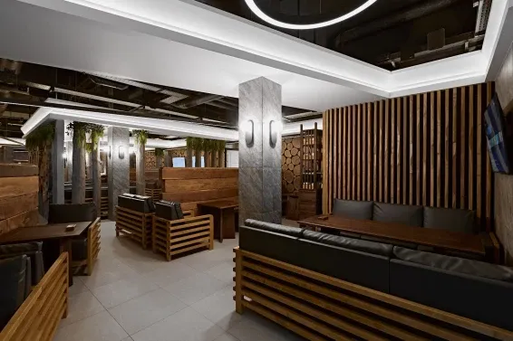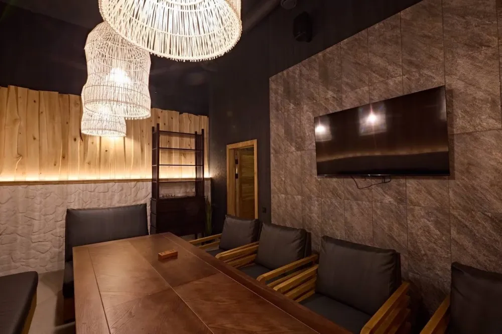 Для отдельного отдыха можно арендовать VIP-комнату вместимостью до 12 человек. Закрытый зал с большим столом и местами повышенного комфорта. А также возможность предзаказа кухни ко времени и телевизор для просмотра трансляций.