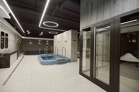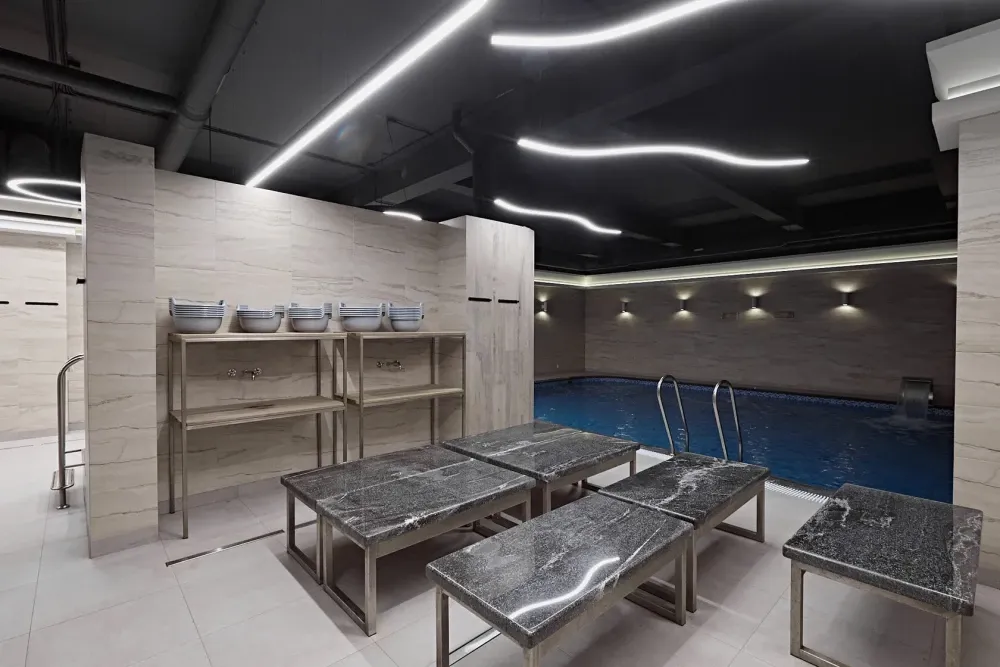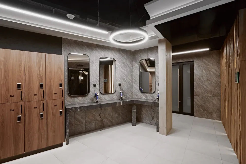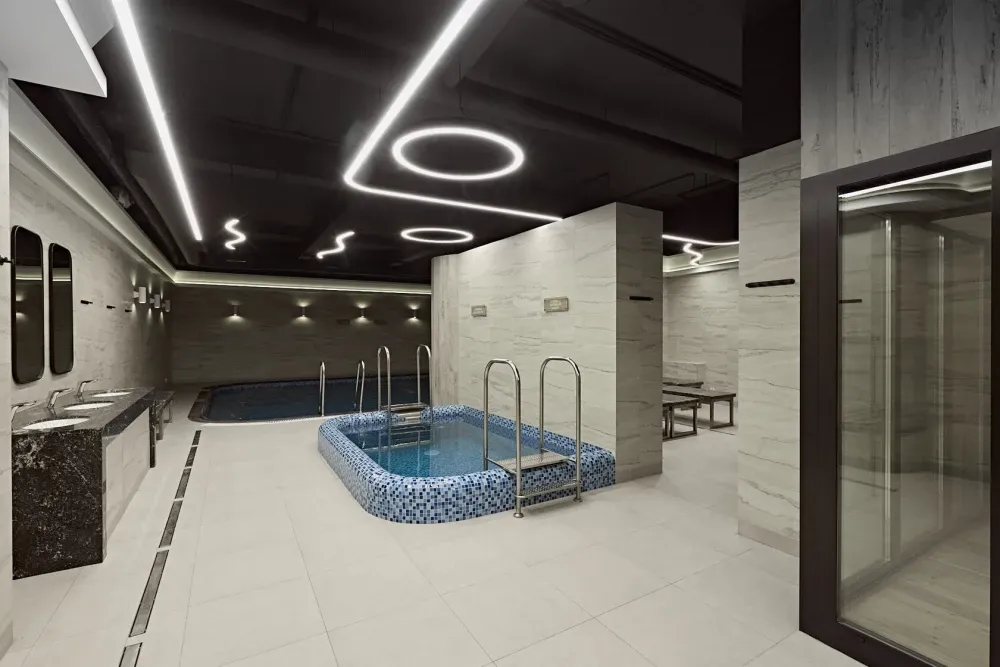 Просторные парные, отдельный зал с бассейнами, ледяная комната, современные моечные, технологичные раздевалки, VIP-комнаты и другое.