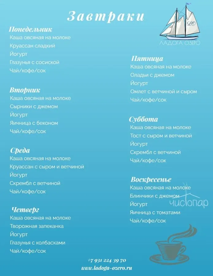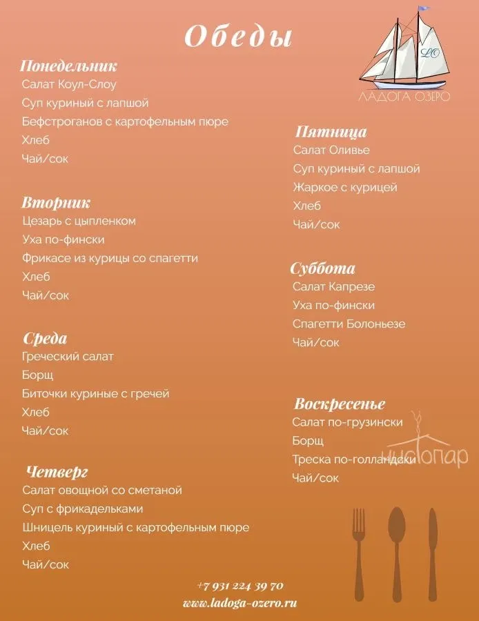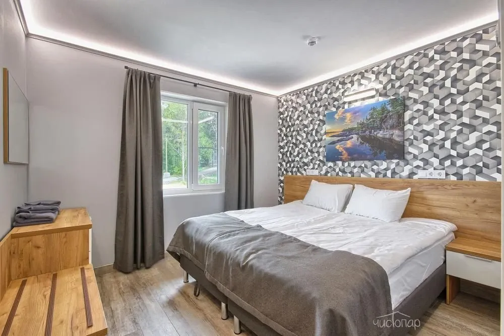 АПАРТАМЕНТЫ9 уютныx номеров первой категории с видом на Ладожское озеро. Номера включают в себя: прихожую, санузел с душевой, уютную спальню, кухню, обособленную террасу с видом на Ладожское озеро. Каждый номер оснащен всем необходимым: холодильник, микроволновая печь, чайник, электрическая варочная панель, комплект посуды, телевизор, фен, постельное белье, полотенца. Общая площадь номера 29 м.кв. На берегу Ладоги для гостей номеров организовано место для барбекю в беседке с садовой мебелью.