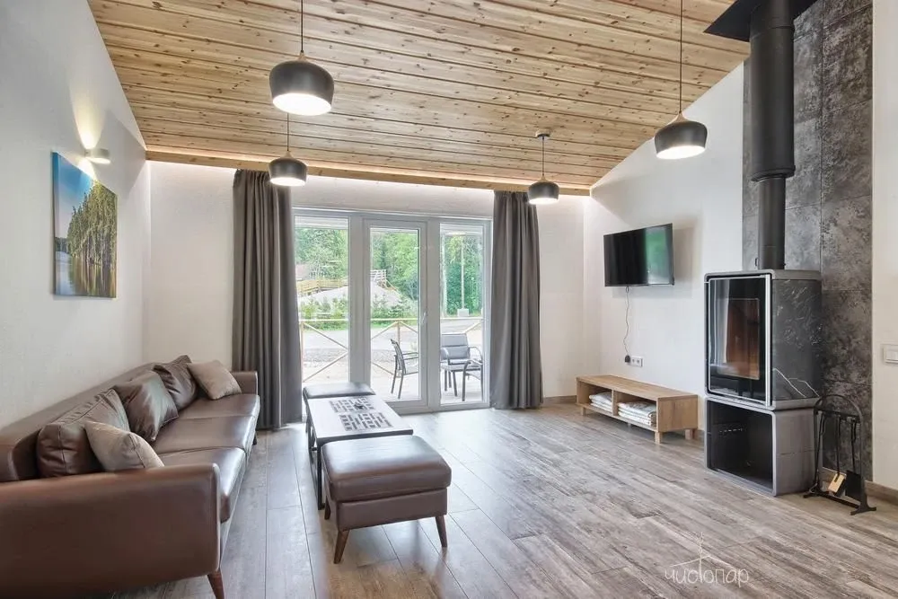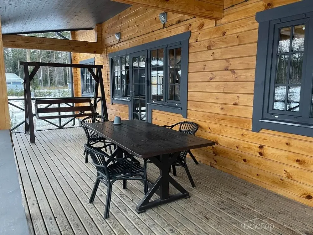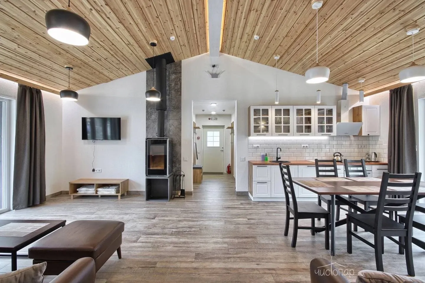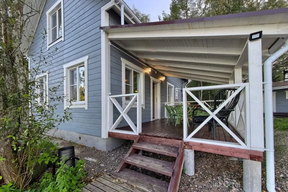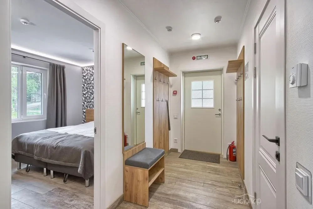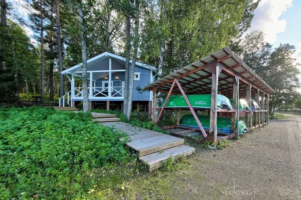 Коттеджи с дровяными саунами на 6 и на 12 человек, коттеджи для 4 в карельском стиле, а также номера для двоих с видом на Ладогу.