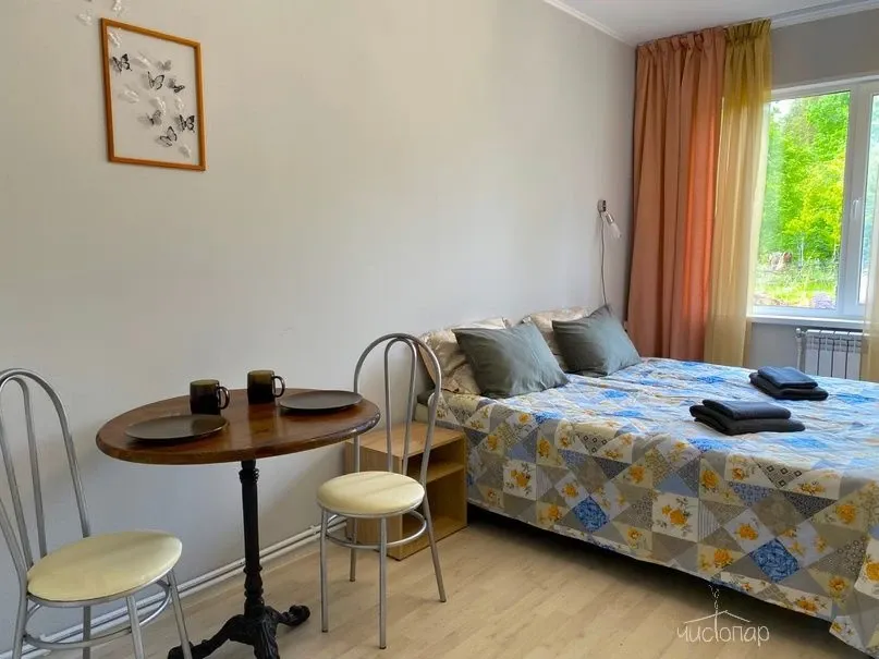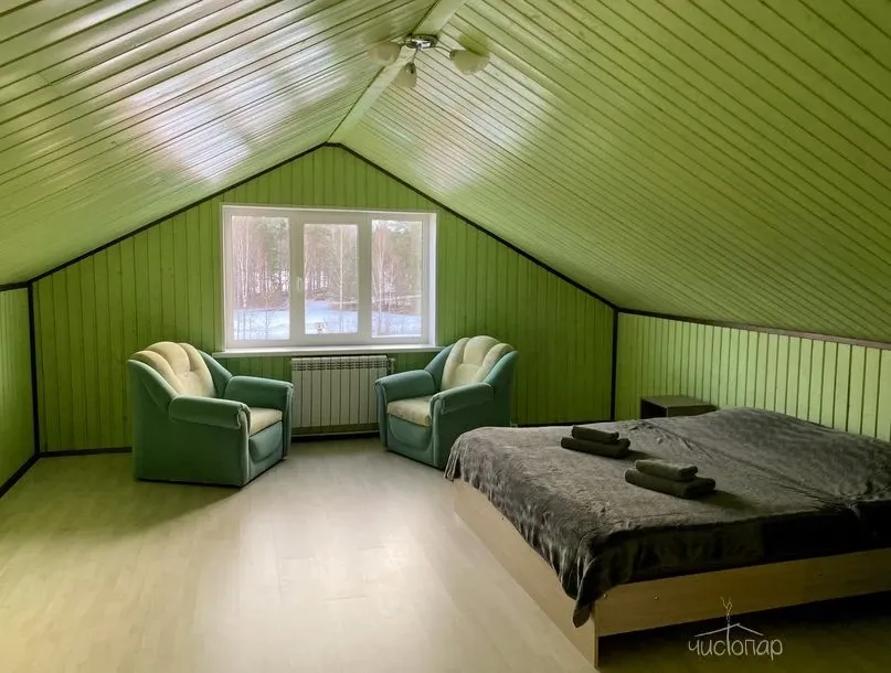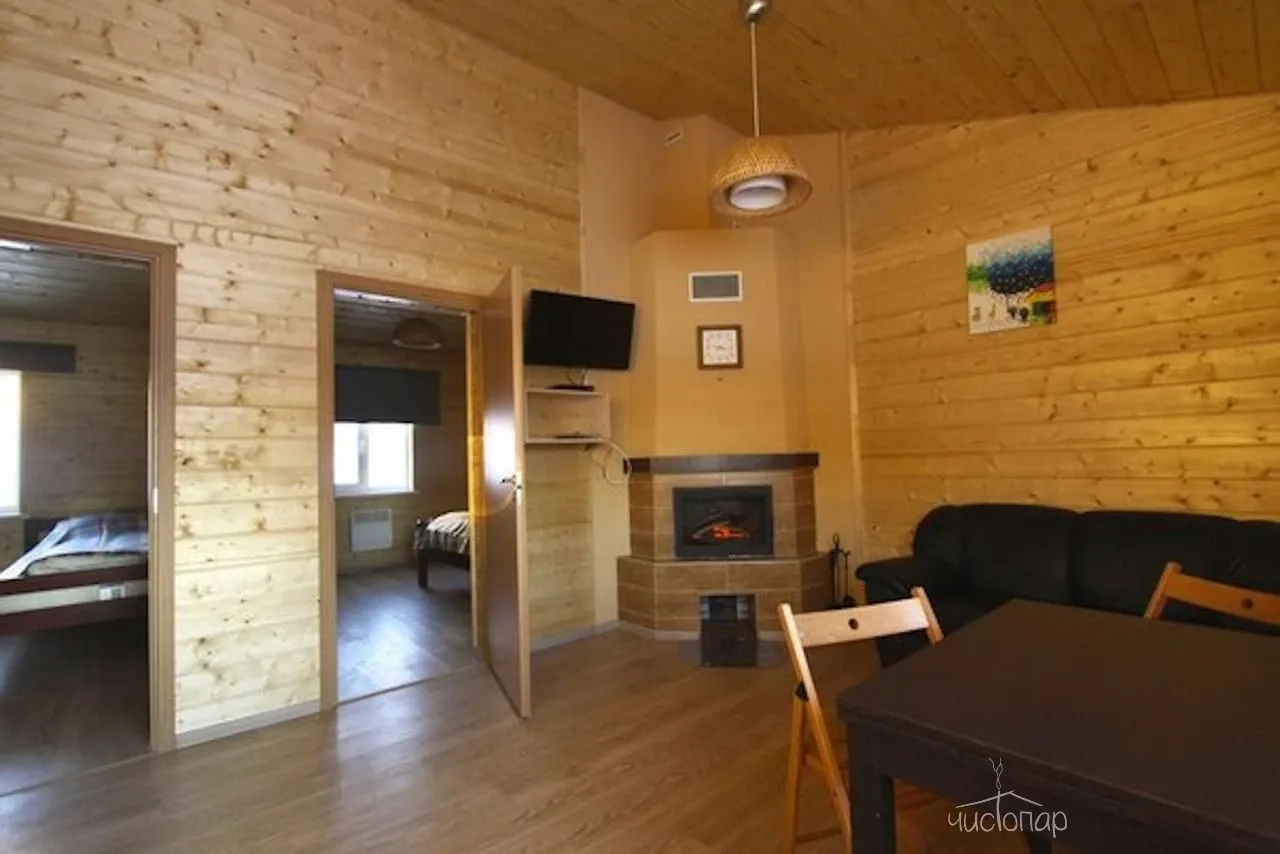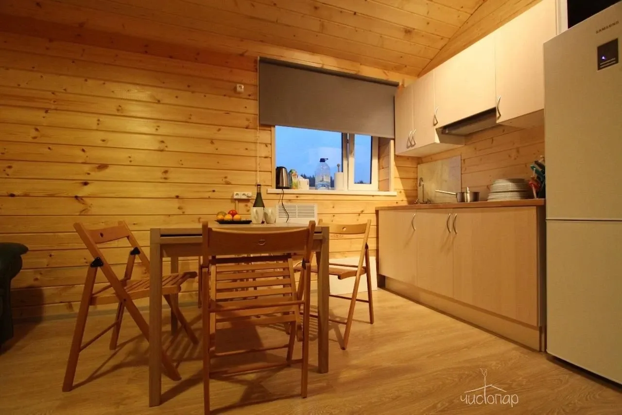 К услугам гостей - кофейный столик, стулья и электрочайник. Вид на лес. Есть возможность установки дополнительного спального места.
