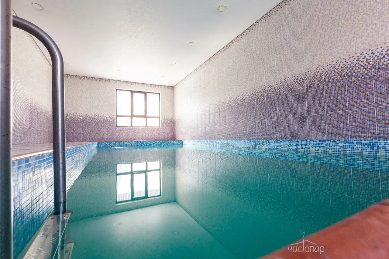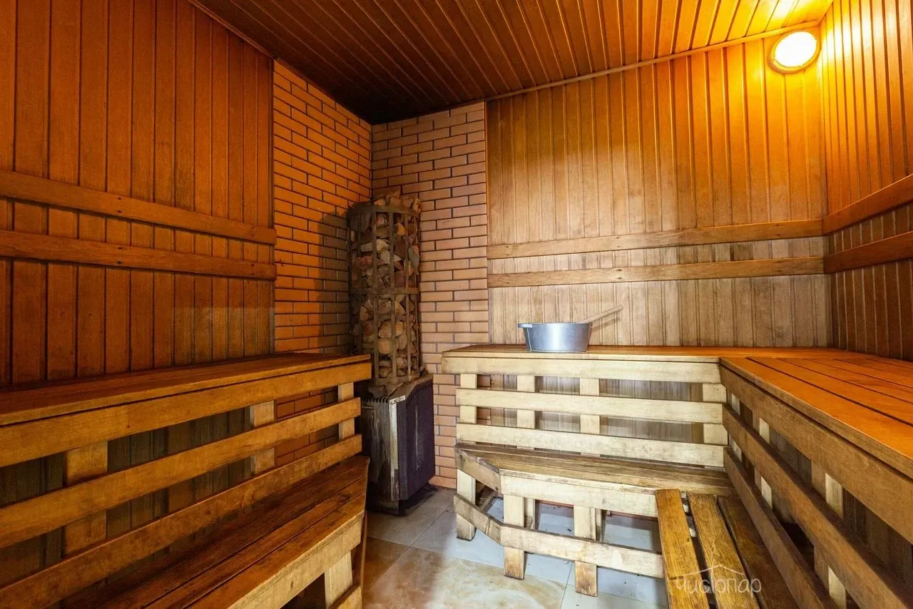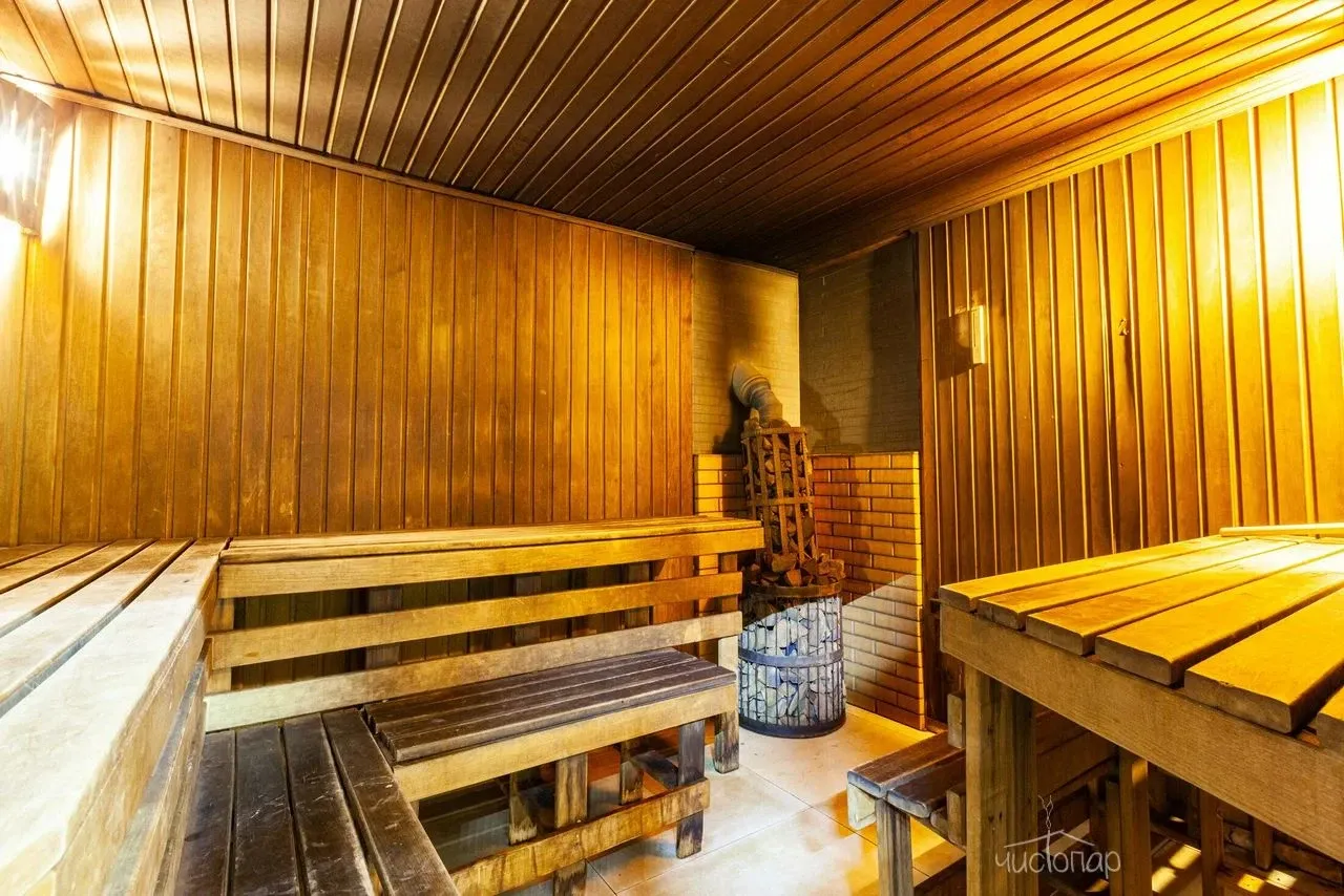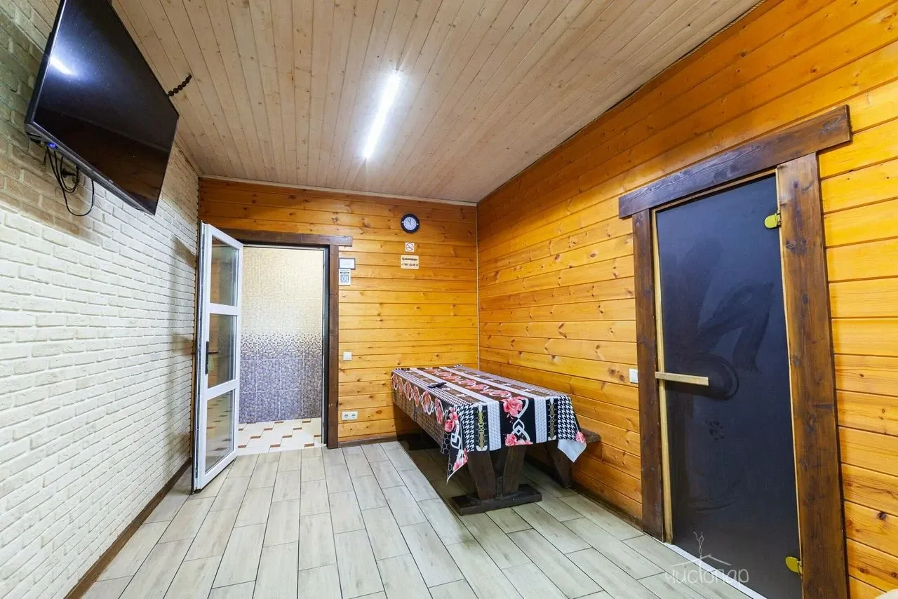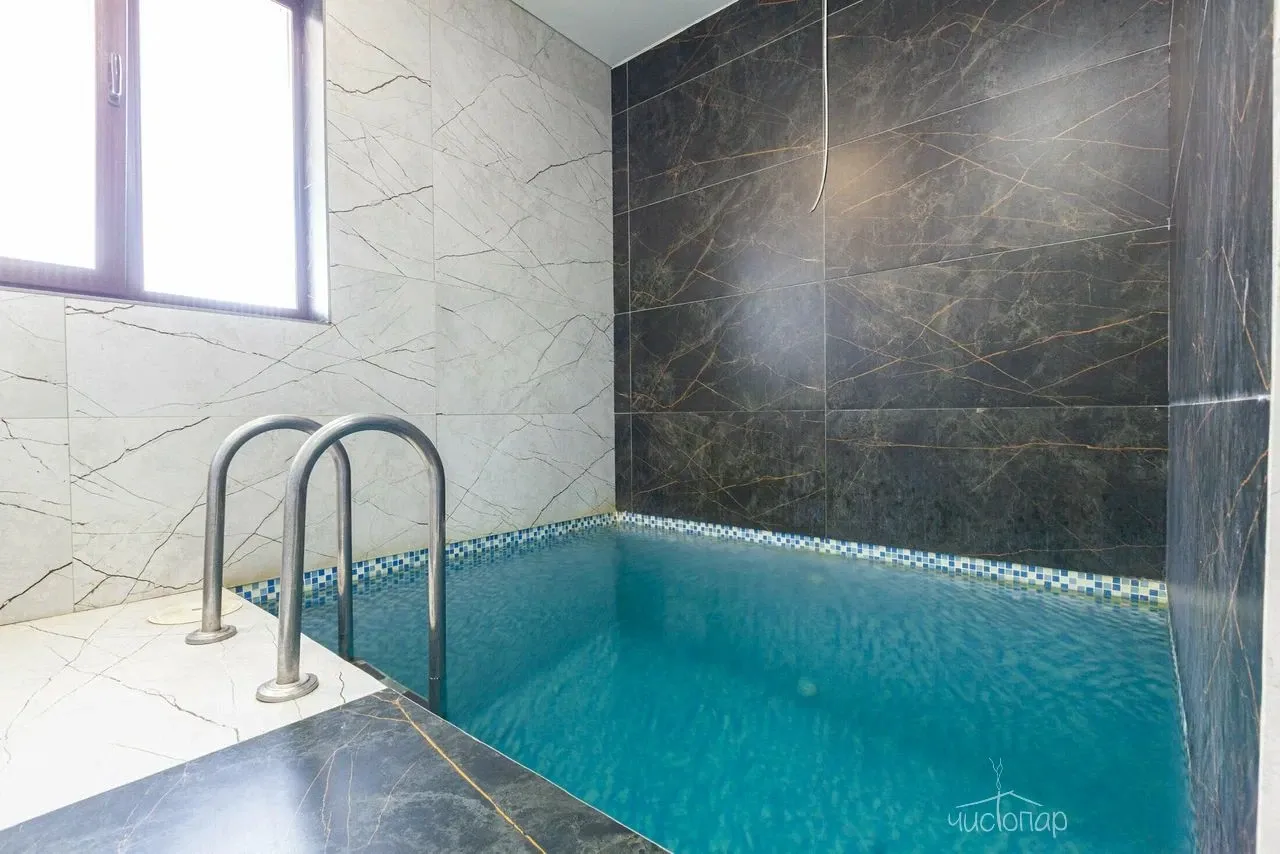 Традиционная русская баня на дровах. Также имеется бассейн, где можно охладиться после захода в парилку с современным водоочистительным оборудованием. В комнате отдыха создан уютный, практичный интерьер из преимущественно натуральных, экологичных материалов. Комплекс не располагает собственной кухней, можно приносить еду с собой и совместить баню с небольшим застольем.