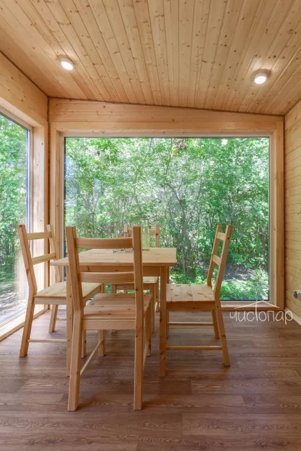 Мы разбили небольшую деревеньку со скандинавскими домиками, чтобы вы прислушались к тишине леса, разожгли костер и побыли наедине с собой.