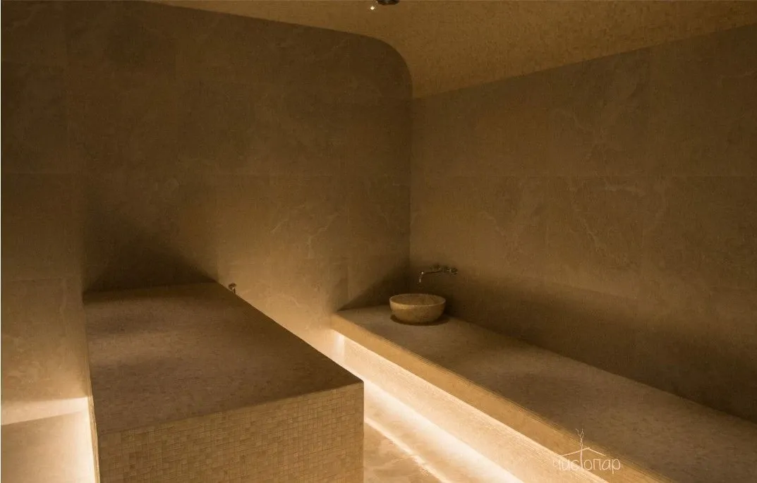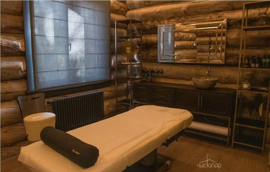 В банном комплексе «VERESK SPA» гостей ждут русская баня из кавказской ольхи, алтайская фито-баня, хамам, массажный кабинет, купель, уличный чан с печным подогревом воды и подогреваемый круглогодичный бассейн на открытом воздухе, зоны отдыха.