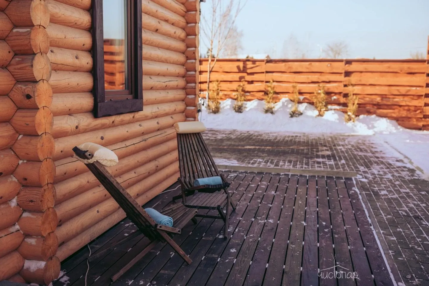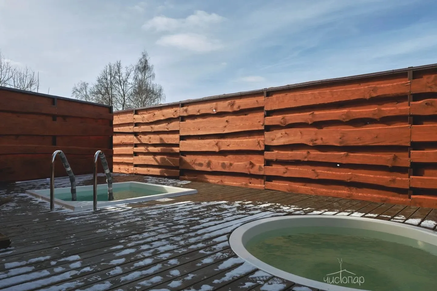 На террасе у каждого комплекса располагаемся холодная и горячая купель