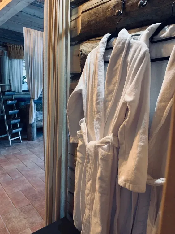 Предоставляются халаты, одноразовое бельё, шапки, простыни, полотенца, тапочки, а также веники и травы.