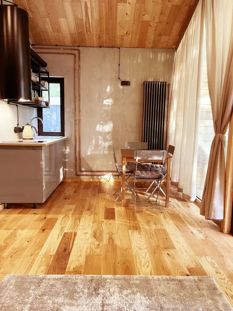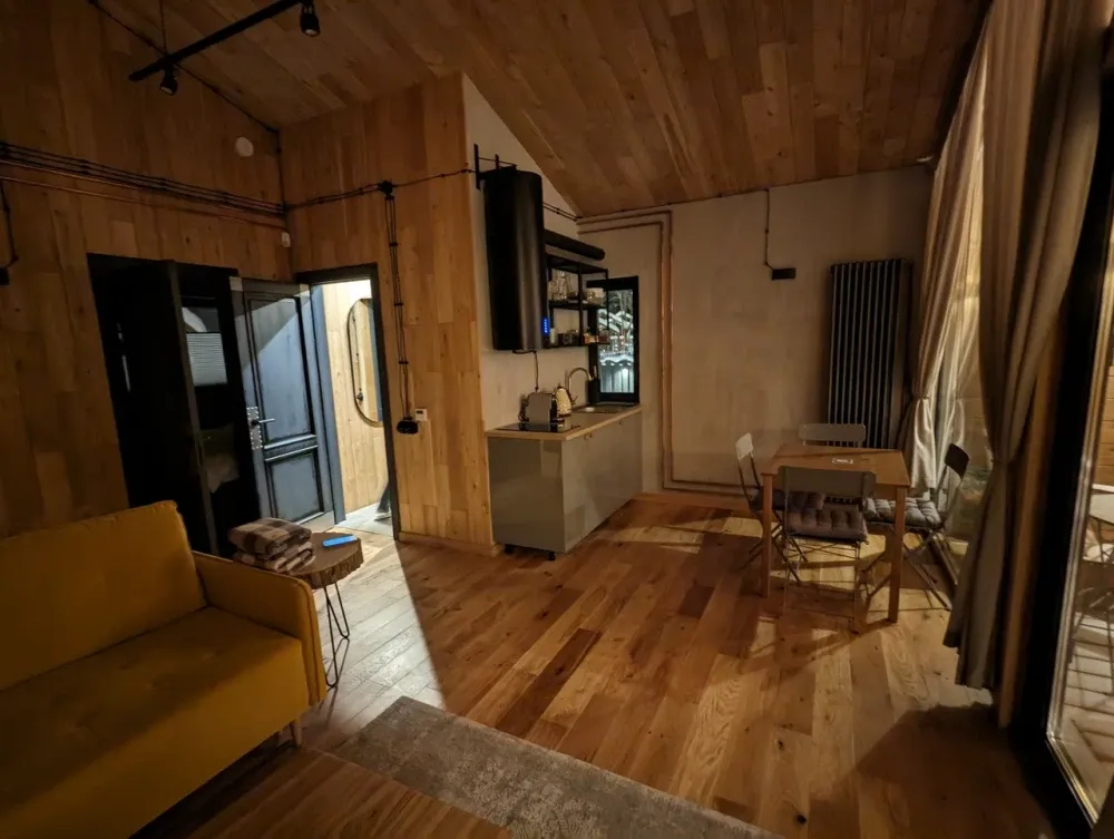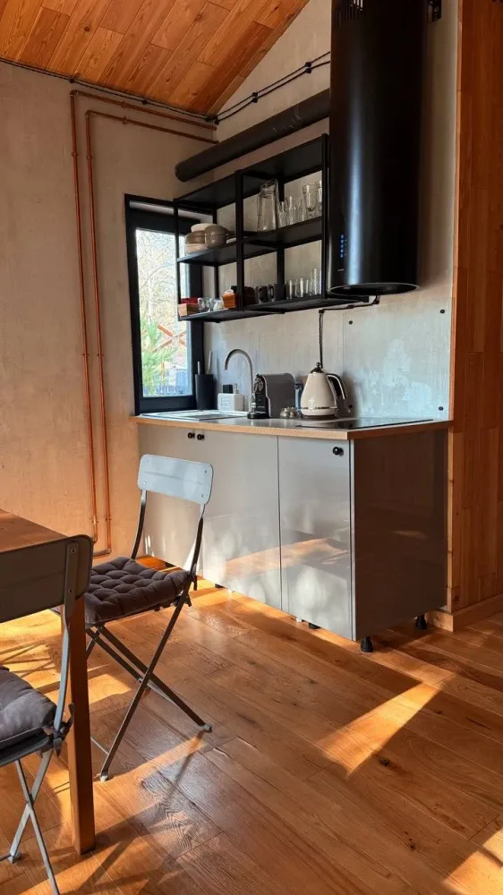 В просторных домах есть все необходимое для комфортного отдыха: гостиная с кухней, спальня, ванна и душевая кабина. Посуда, постельное бельё, полотенца, косметика для душа предоставляются гостям бесплатно.