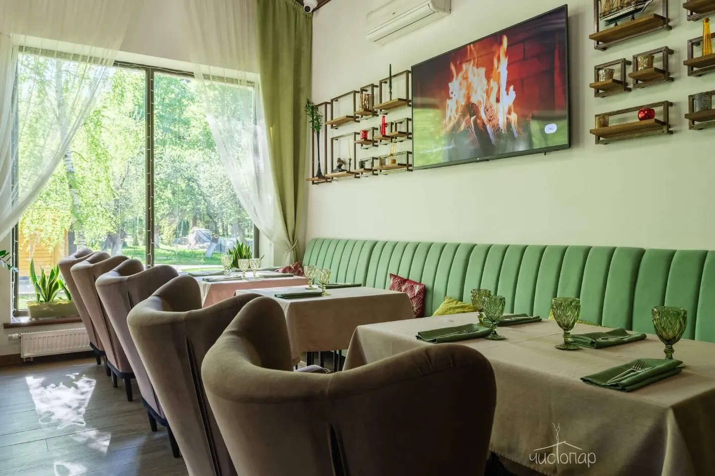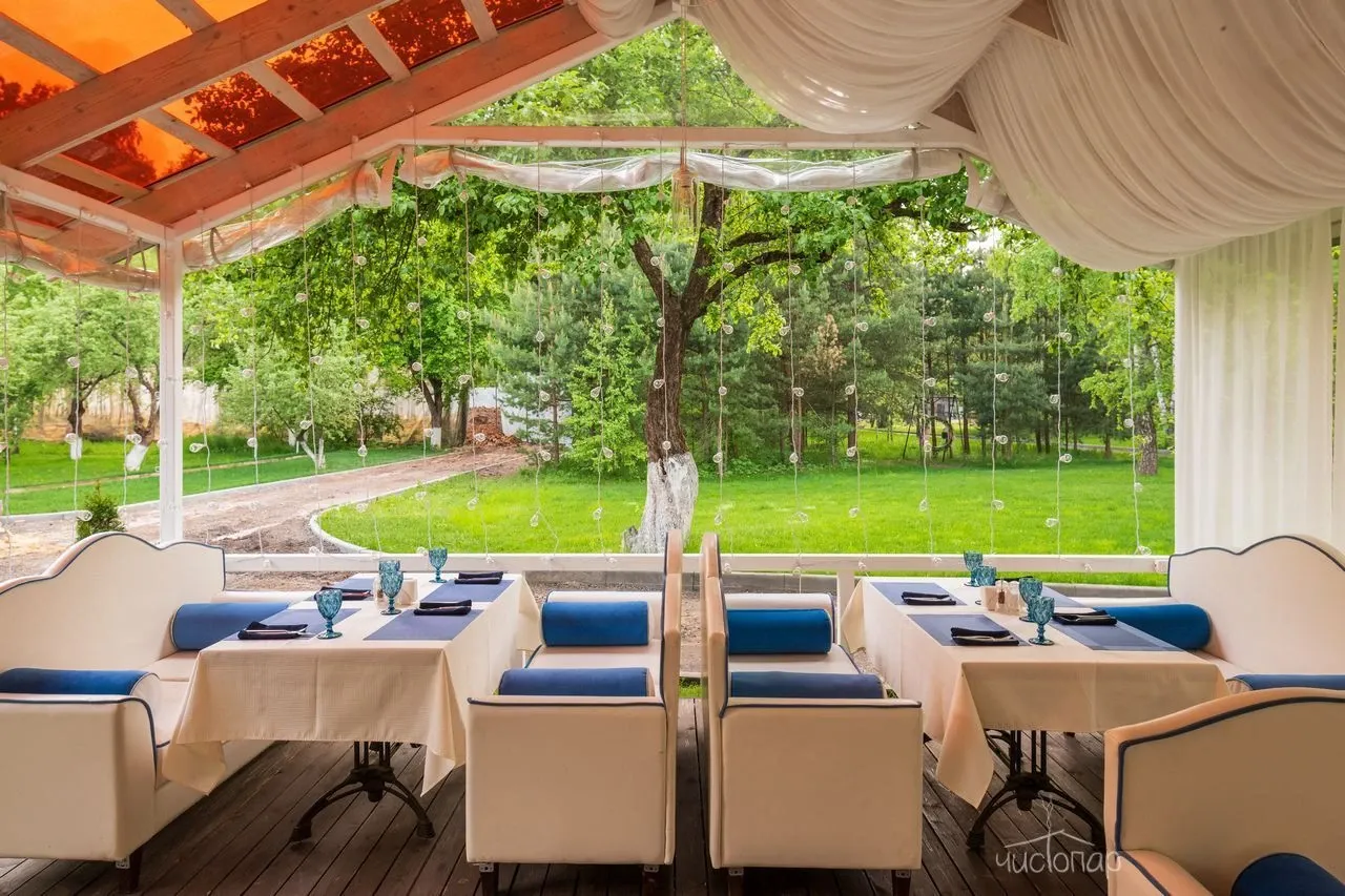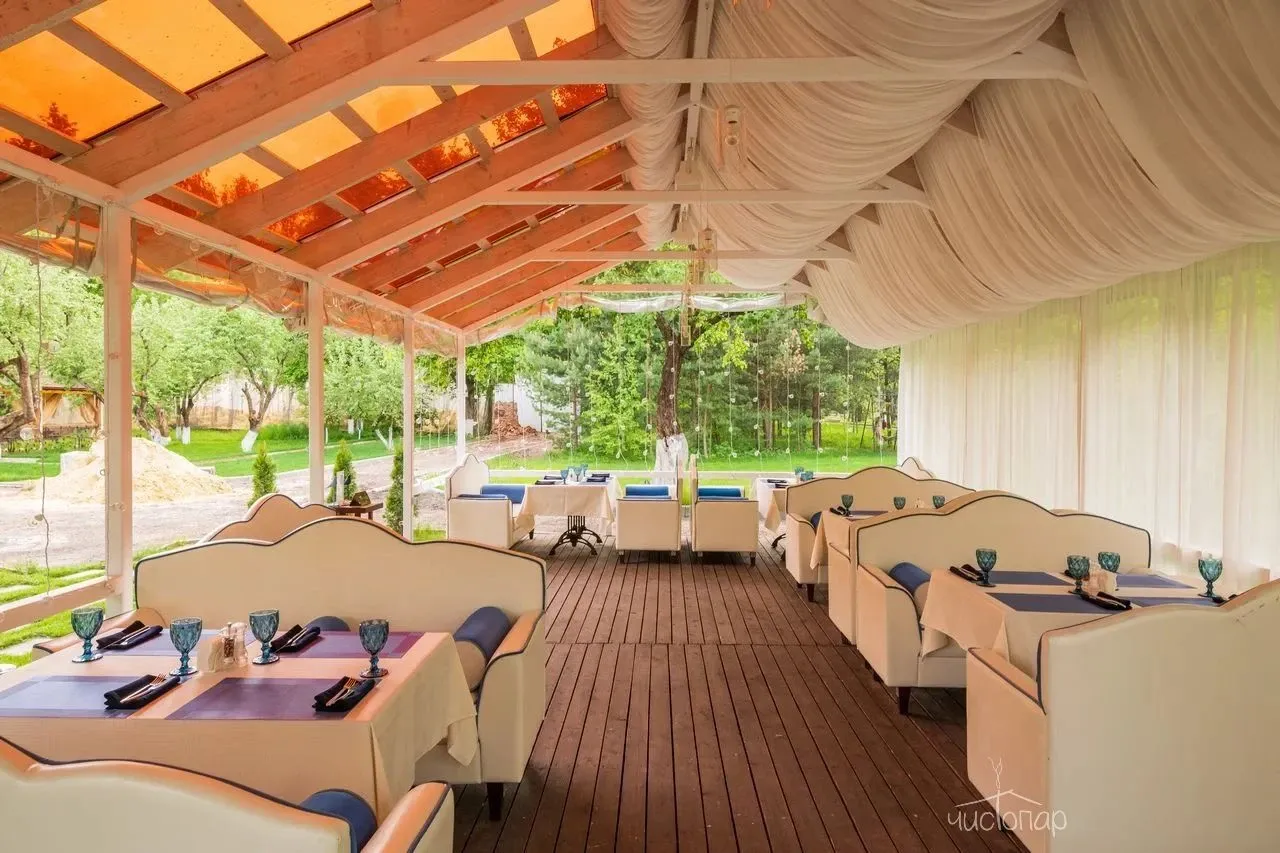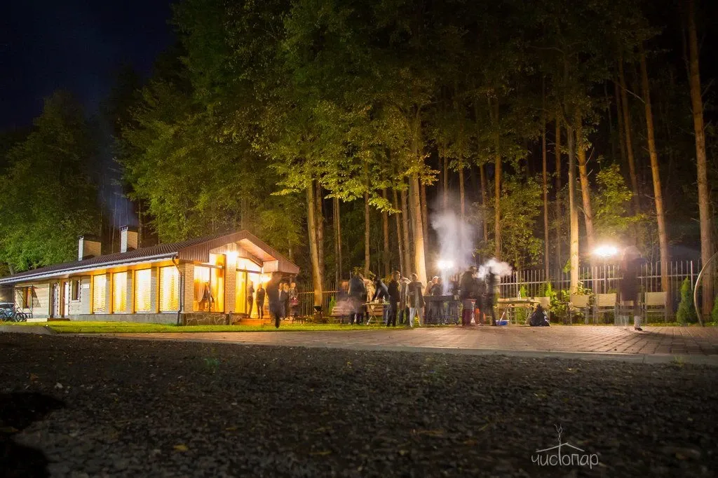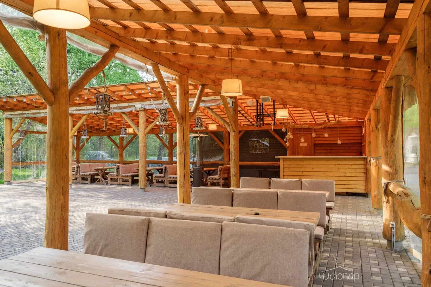 На базе отдыха есть зеленый внутренний двор, бассейн с подогревом, терраса (веранда), детская площадка, площадка для пикника, охраняемая территория, огороженная территория, мангал, стол для настольного тенниса, шезлонги, интернет wi-fi, круглосуточный ресепшн, интернет, ресторан, баня/сауна, пожарная сигнализация, охраняемый огороженный двор.