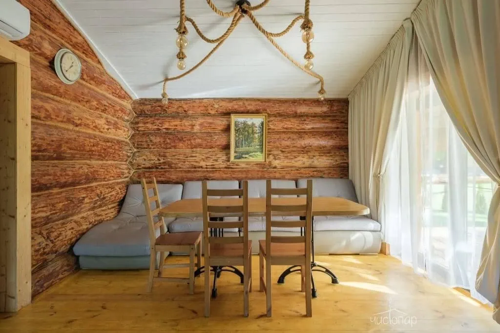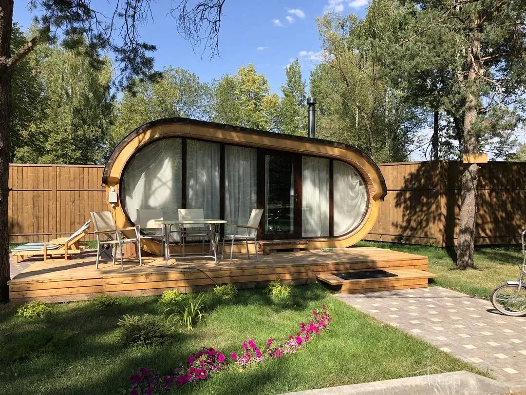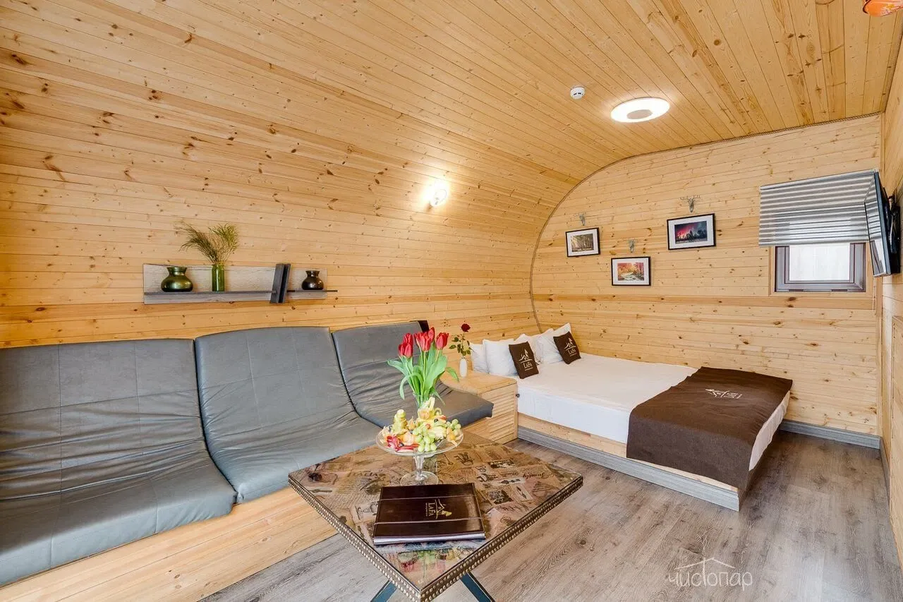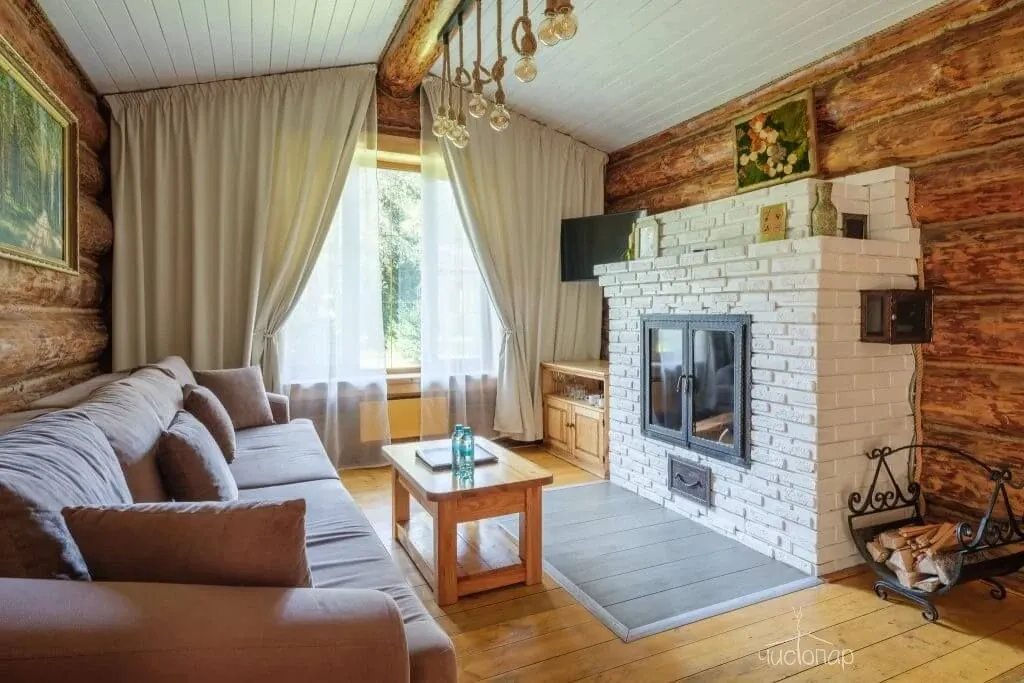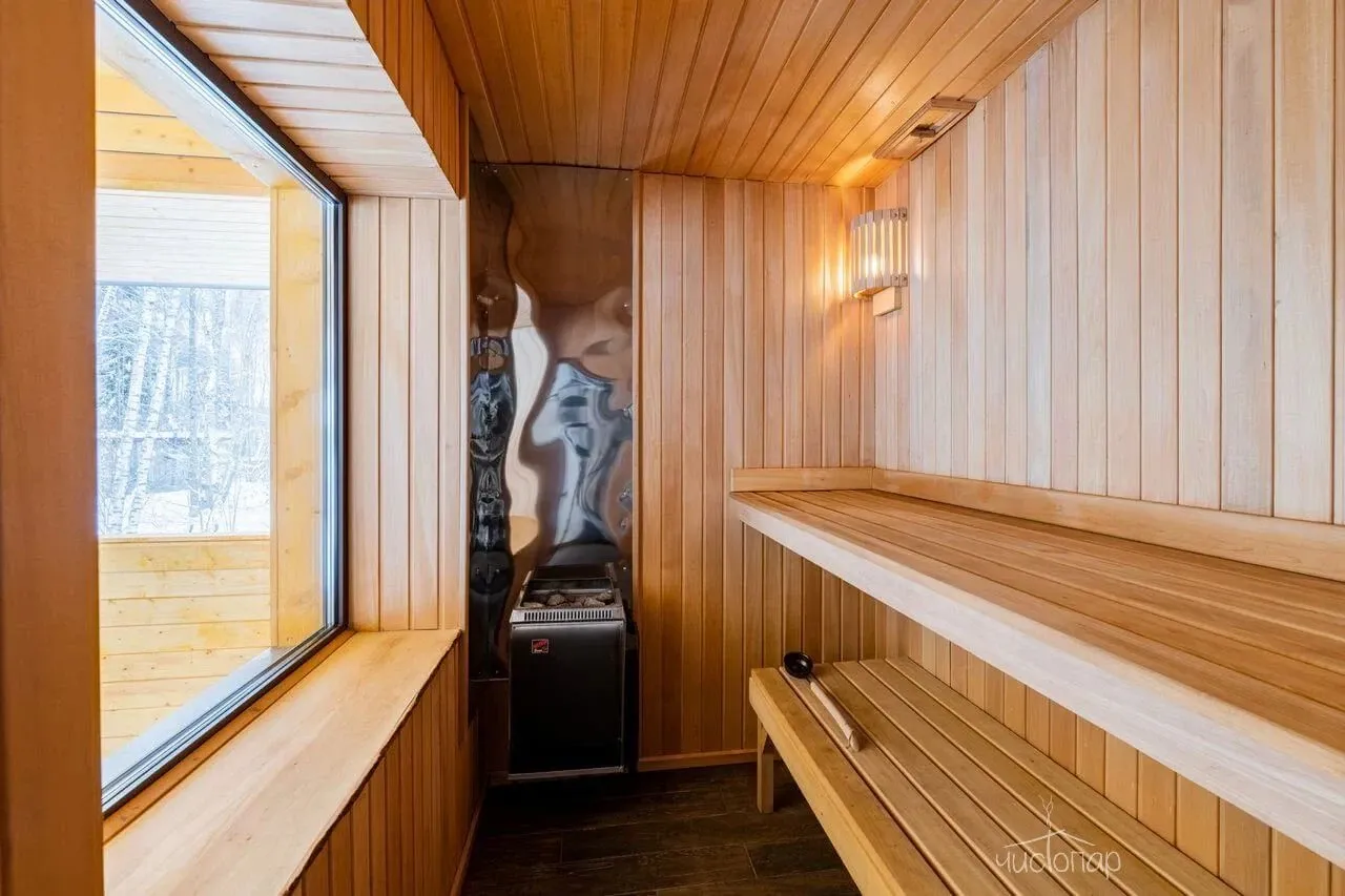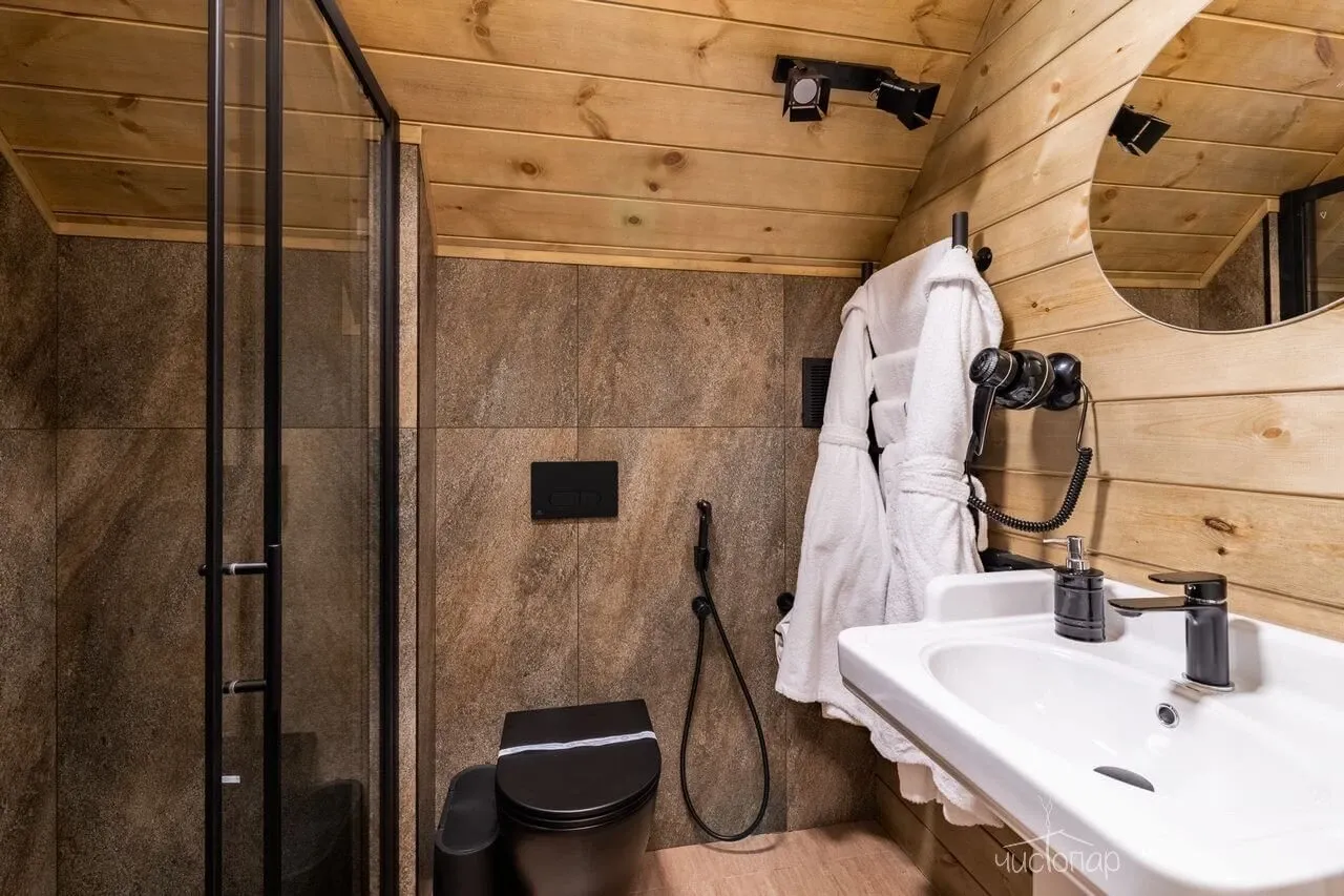 Уютные шале, в каждом из которых есть настоящий камин на дровах, сауна, уличные купели. Можно заказать еду из ресторанного меню. Летом можно прогуляться по саду, покататься на велосипедах или позагорать на шезлонгах, зимой — попариться в бане, посидеть в теплом чане с ароматными травами, покататься на санках или побродить по заснеженному лесу.