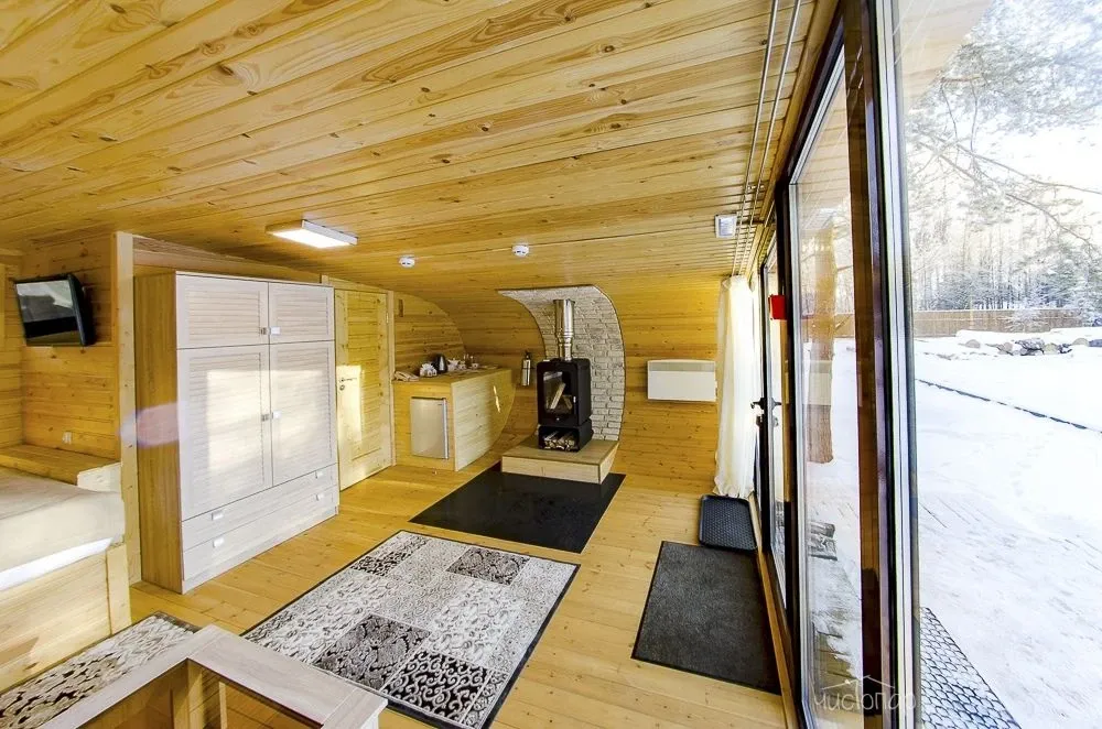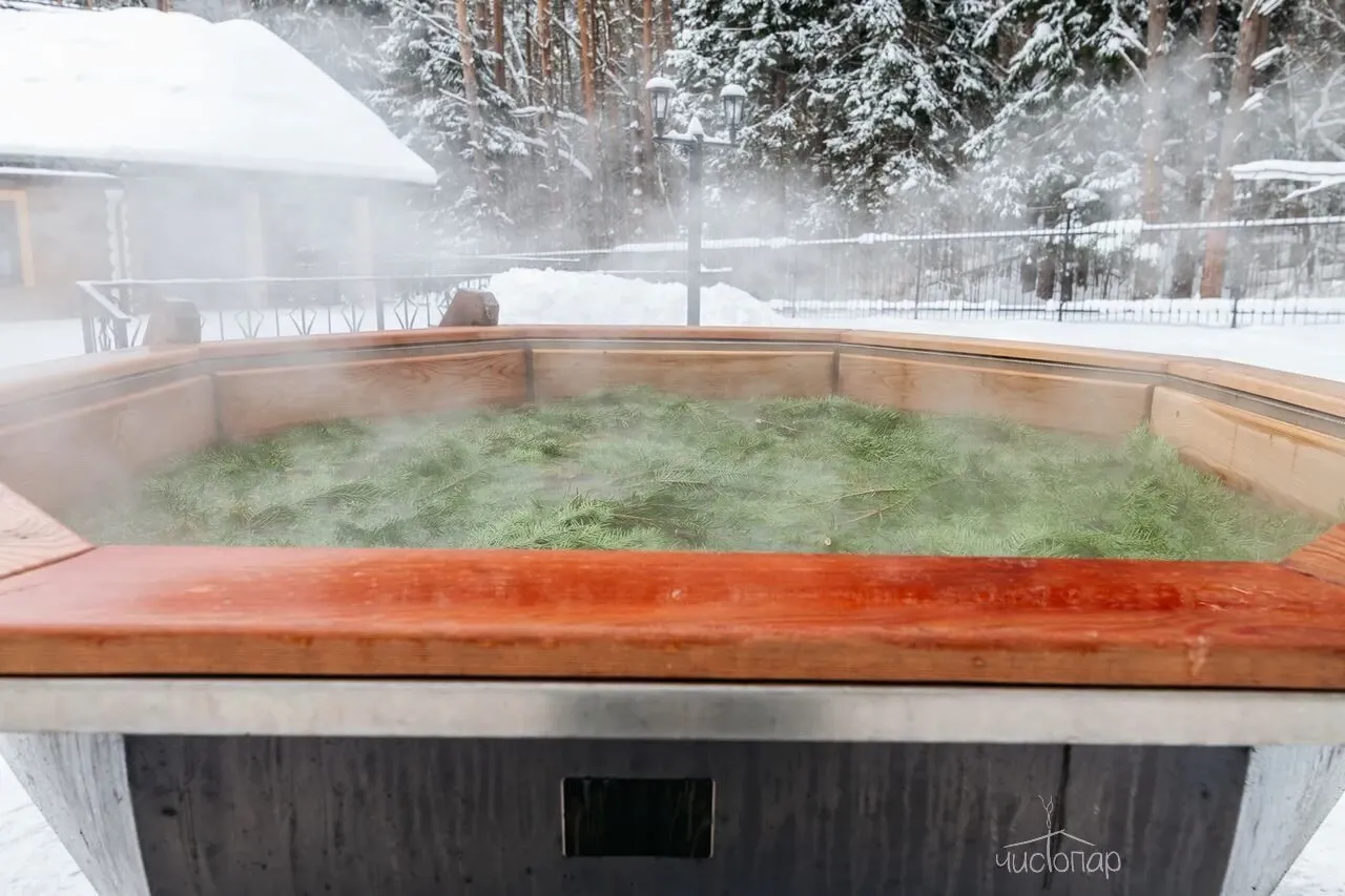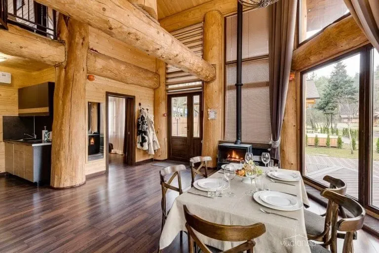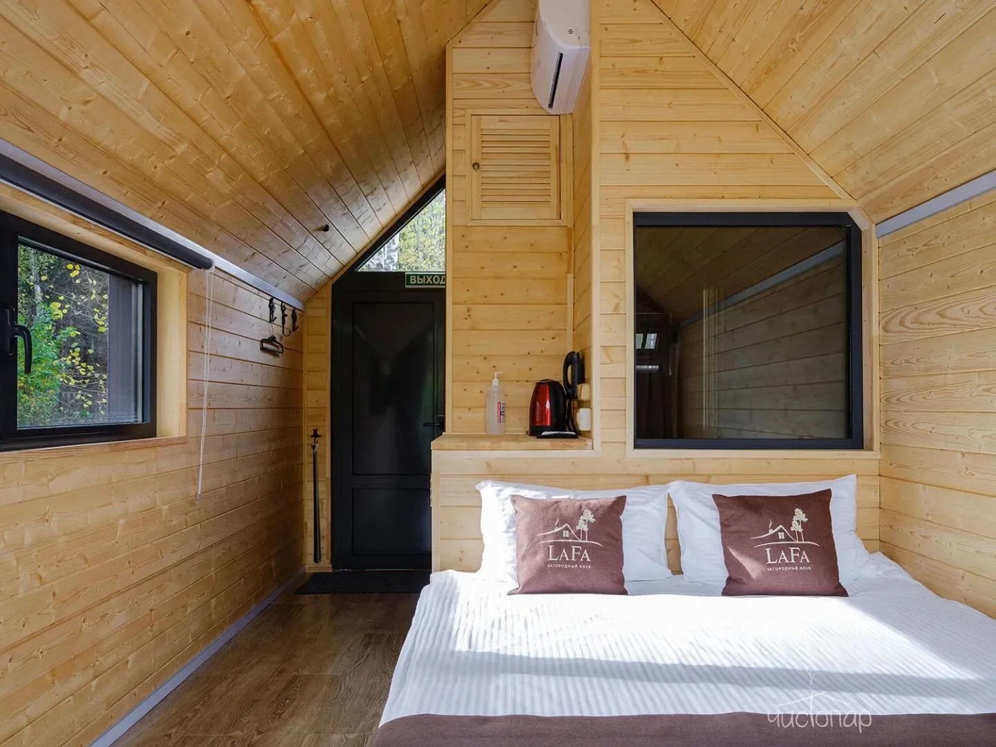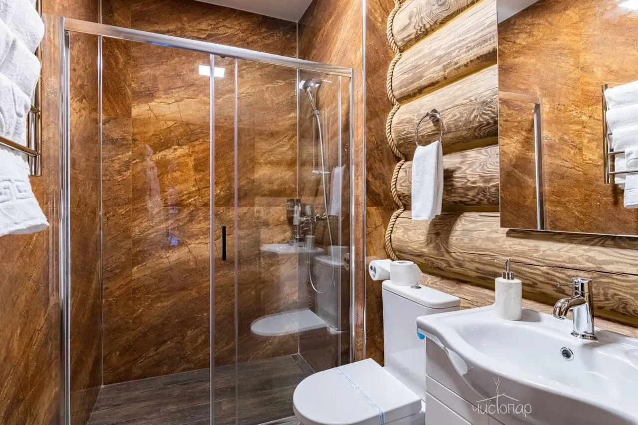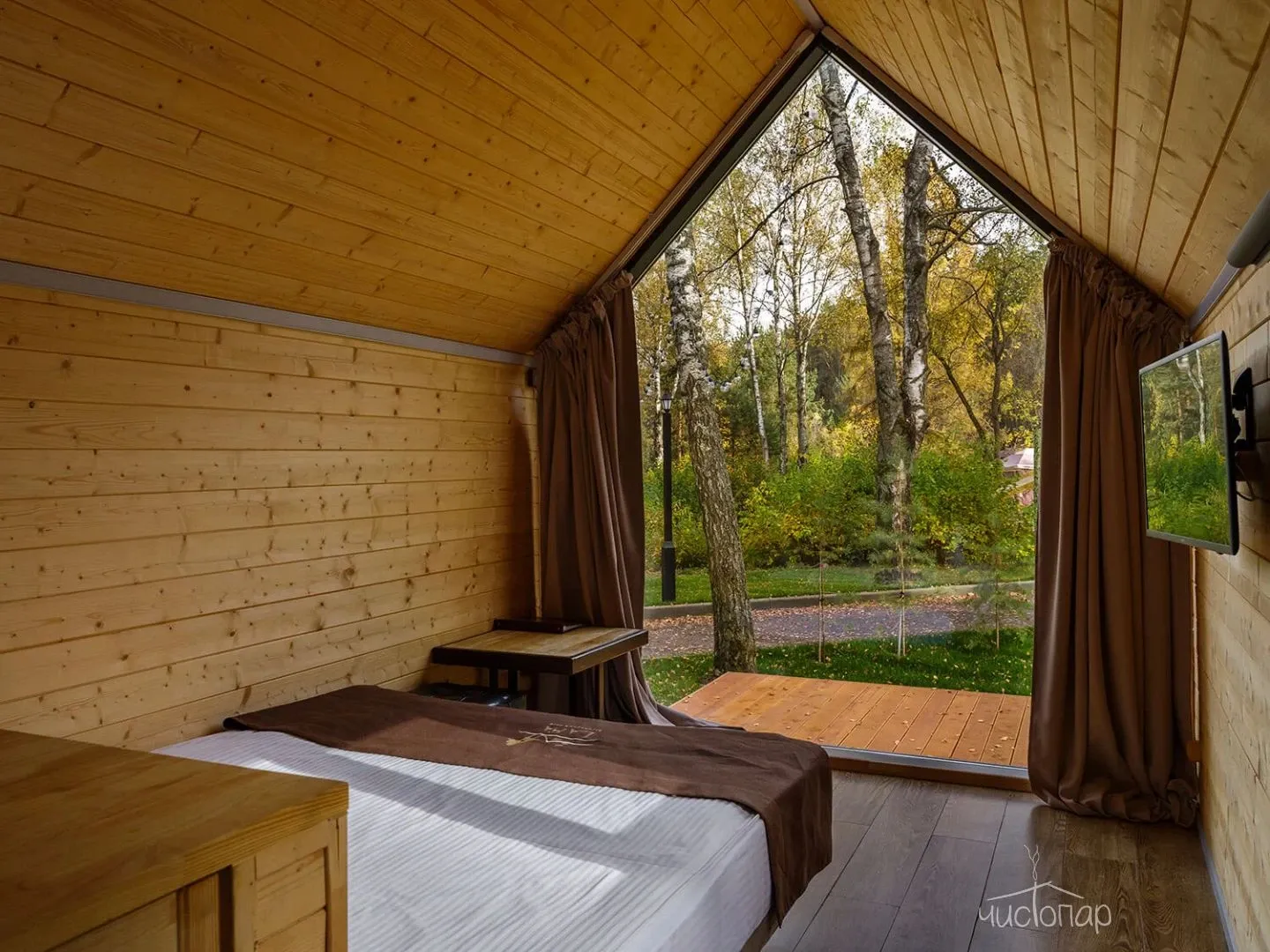 Уютные шале, в каждом из которых есть настоящий камин на дровах, сауна, уличные купели. Можно заказать еду из ресторанного меню. Летом можно прогуляться по саду, покататься на велосипедах или позагорать на шезлонгах, зимой — попариться в бане, посидеть в теплом чане с ароматными травами, покататься на санках или побродить по заснеженному лесу.