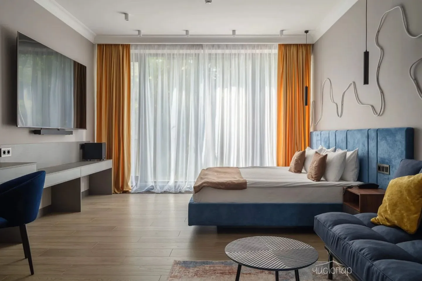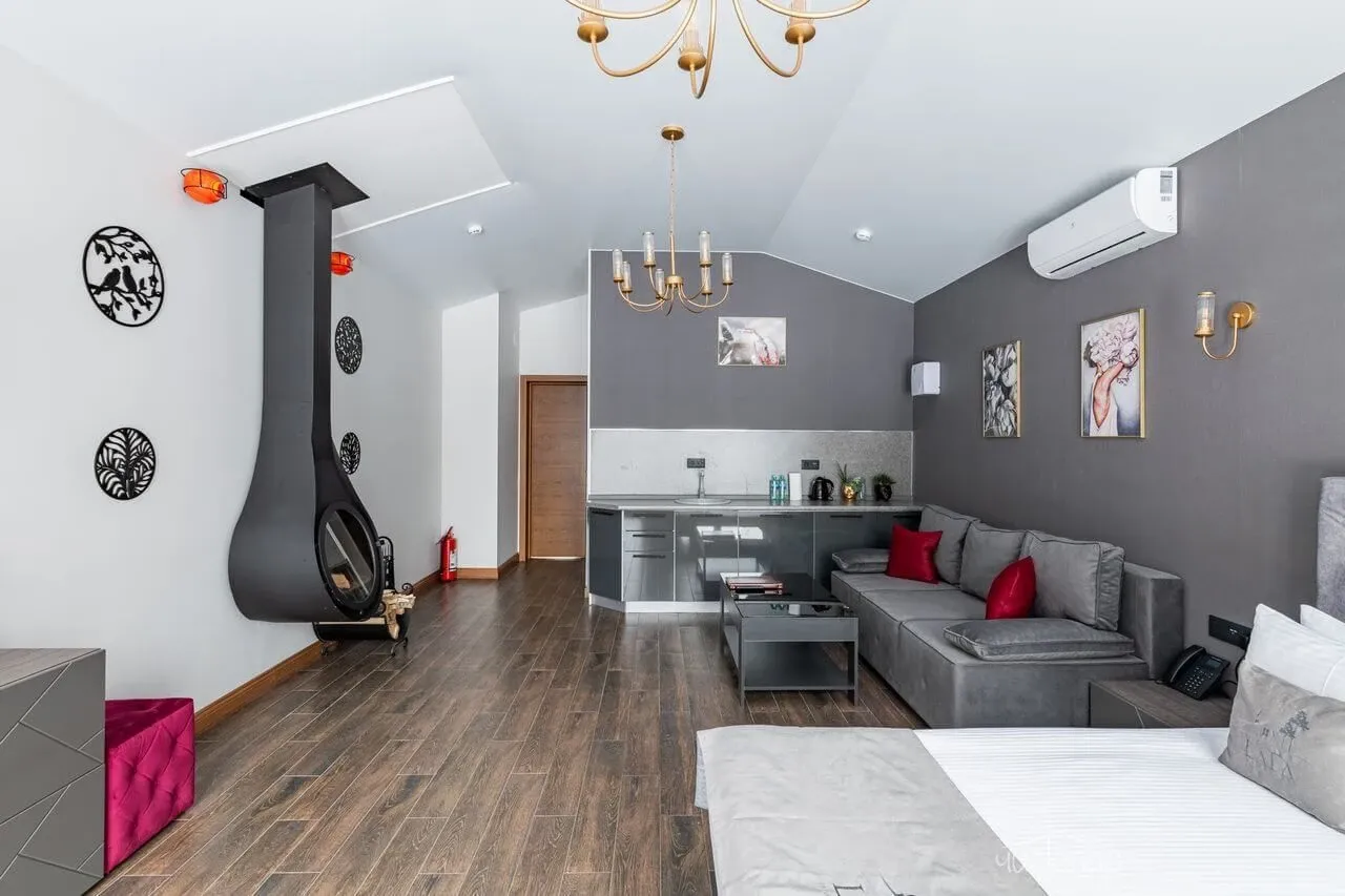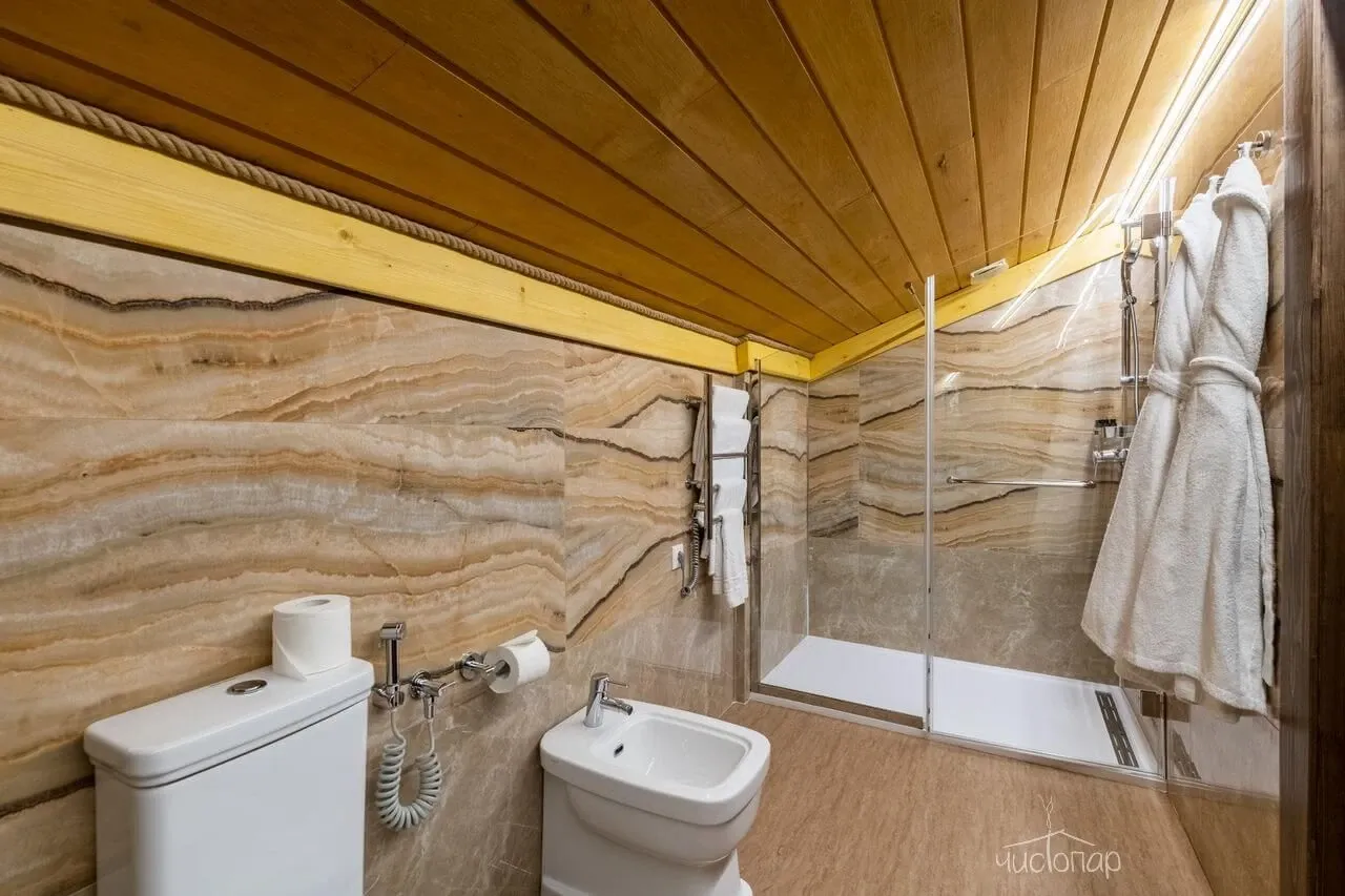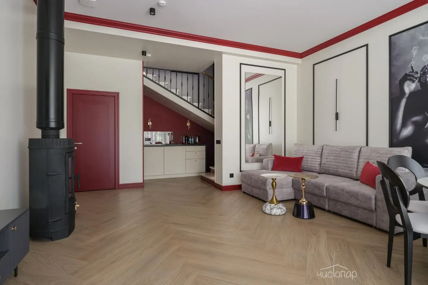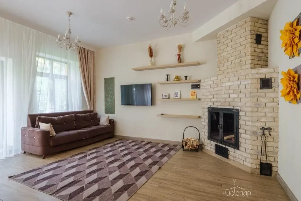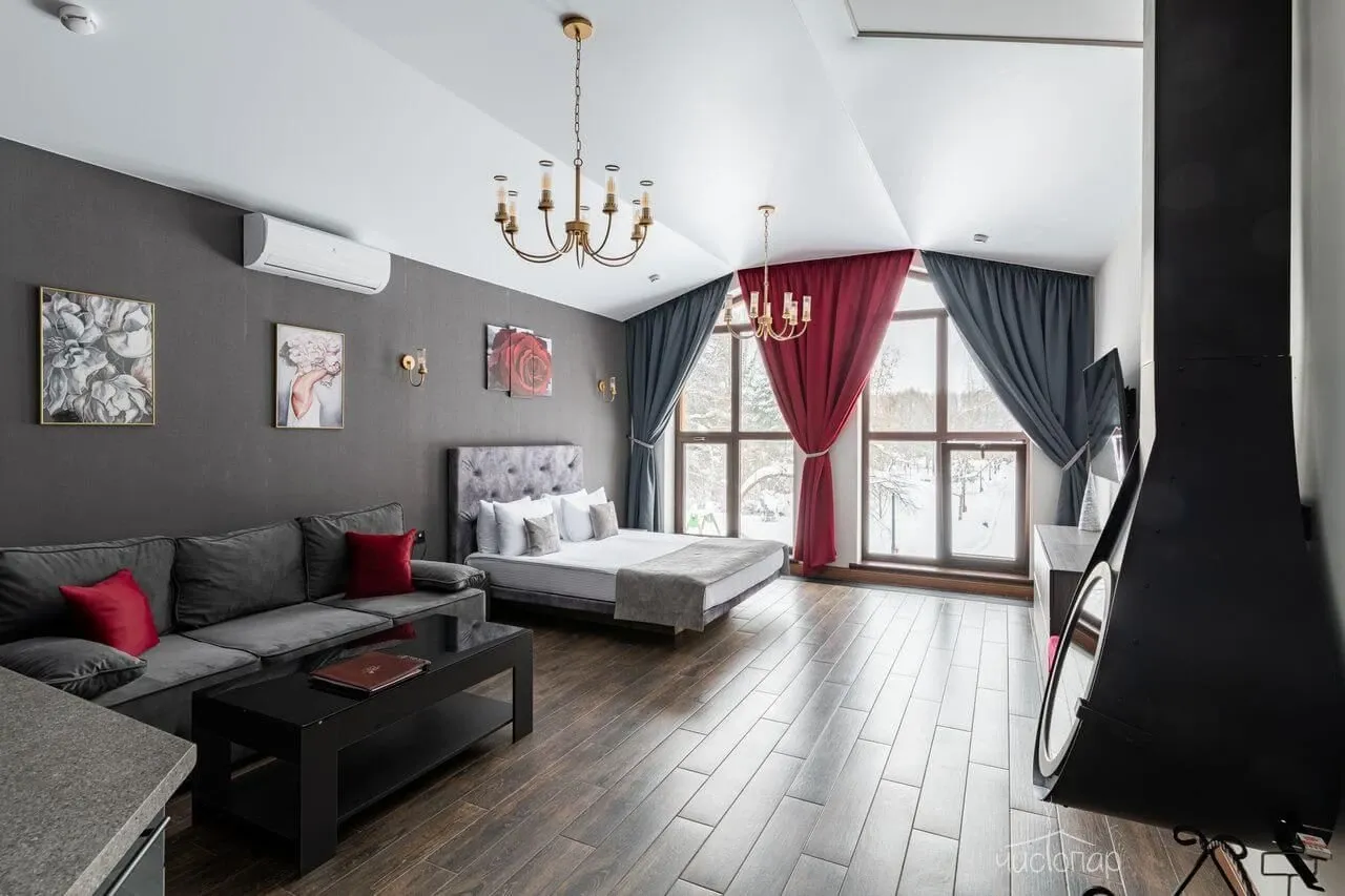 Уютные шале, в каждом из которых есть настоящий камин на дровах, сауна, уличные купели. Можно заказать еду из ресторанного меню. Летом можно прогуляться по саду, покататься на велосипедах или позагорать на шезлонгах, зимой — попариться в бане, посидеть в теплом чане с ароматными травами, покататься на санках или побродить по заснеженному лесу.