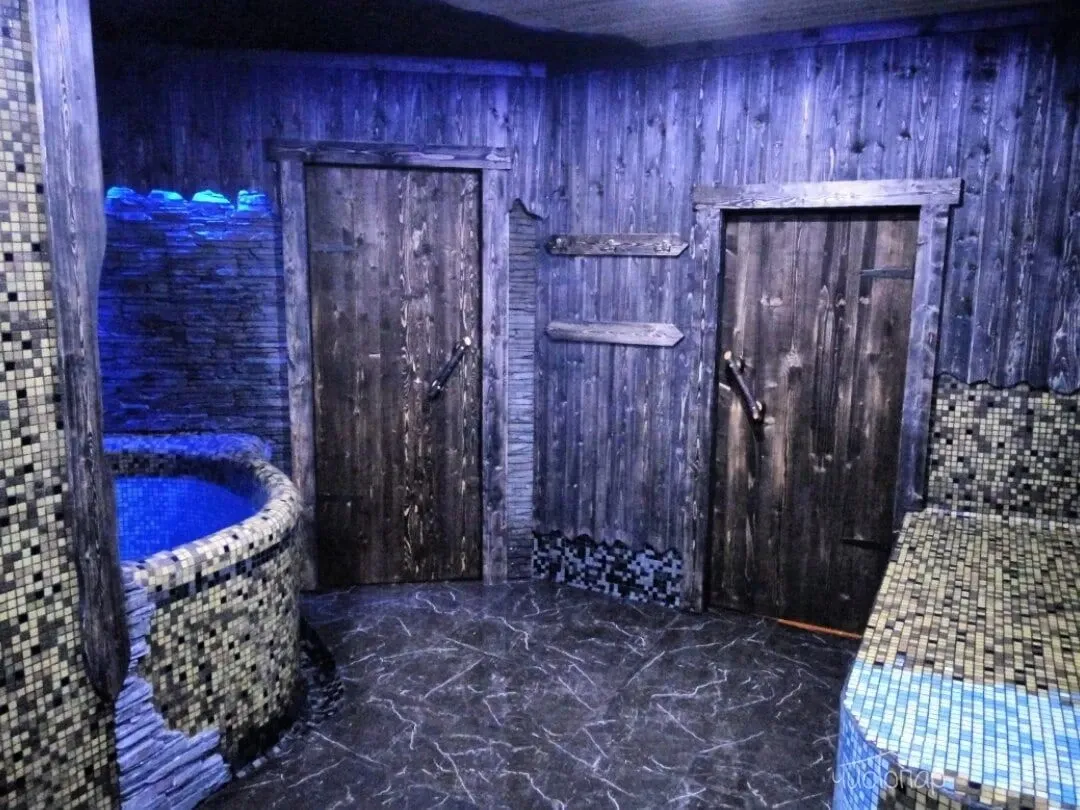 Приятным дополнением к отдыху будет банька с небольшой купелью. В парной гости проводят время с пользой для физического и душевного состояния. А комната для чаепитий и разговоров после банных процедур сделает отдых еще более уютным.