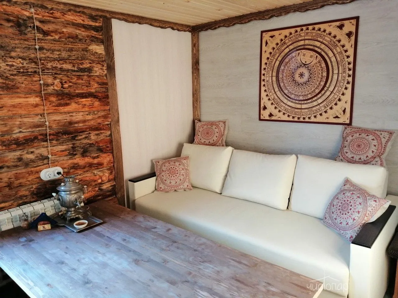 Между парениями расслабьтесь в уютной комнате отдыха: выпейте травяной чай или сезонный банный напиток с перекусом, полюбуйтесь огнём в камине. Или подышите свежим воздухом, лежа в шезлонге на улице.